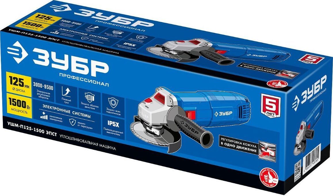 Комплектация: углошлифовальная машина, руководство по эксплуатации, ключ специальный, рукоятка дополнительная, кожух защитный , Количество аккумуляторов в комплекте: без аккумулятора , Модификация (код производителя): УШМ-П125-1500 ЭПСТ
