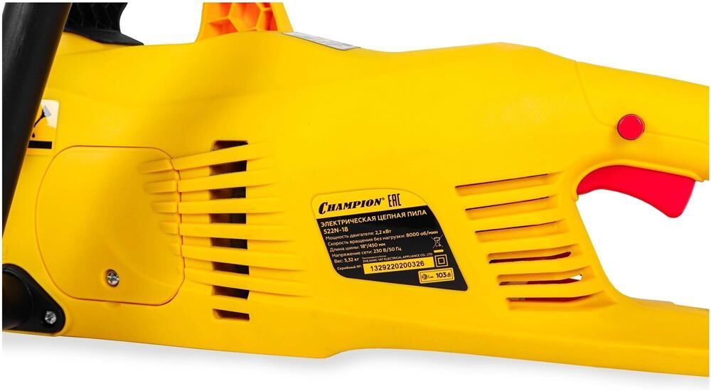 Номинальная мощность двигателя, (кВт) 2,2 Вес, (кг) 4,1 Безинструментальный механизм натяжения цепи Длина шины, (дюйм/см) 18 Количество звеньев цепи, (шт) 62 Максимальные обороты двигателя, (об/мин) 8 000 Напряжение сети, (В/Гц) 230/50 Объем масляного бака, (л) 0,14 Расположение двигателя продольное Уровень вибрации, (м/с²) 4,6/3,9 Уровень звукового давления, (дБ) 91,2 Уровень мощности звука, (дБ) 102,2 Шаг пильной цепи, (дюймы) 3/8 Ширина паза пильной шины, (мм) 1,3