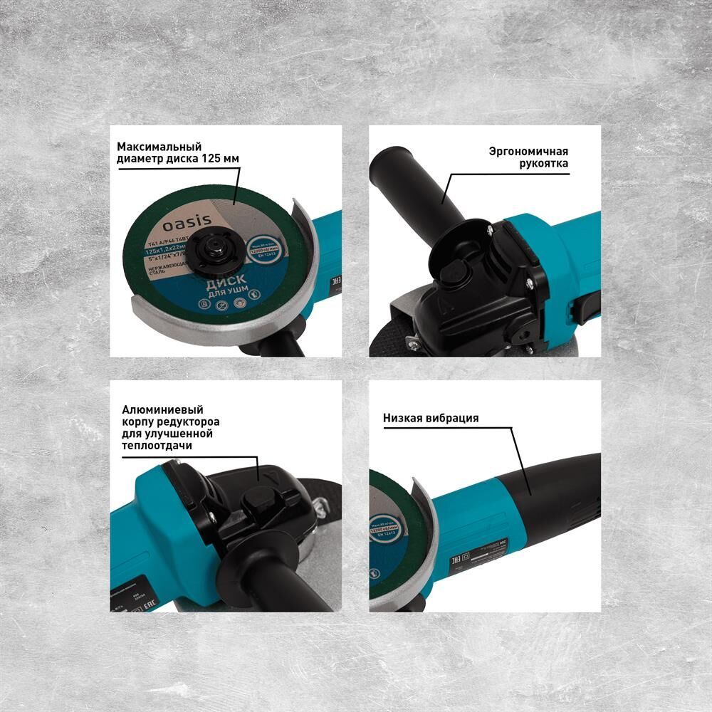 Мощность 900 Вт; 220/50 В/Гц; диаметр диска 125 мм; Диаметр посадочного отверстия шлифкруга 22 мм; 11000 об/мин;