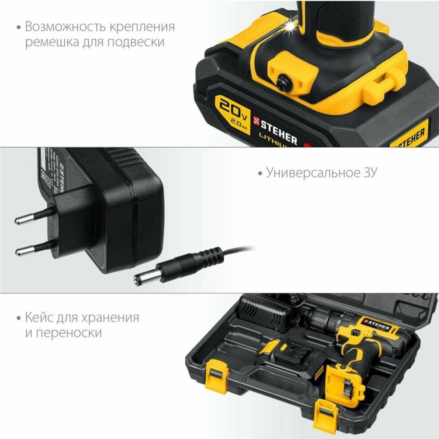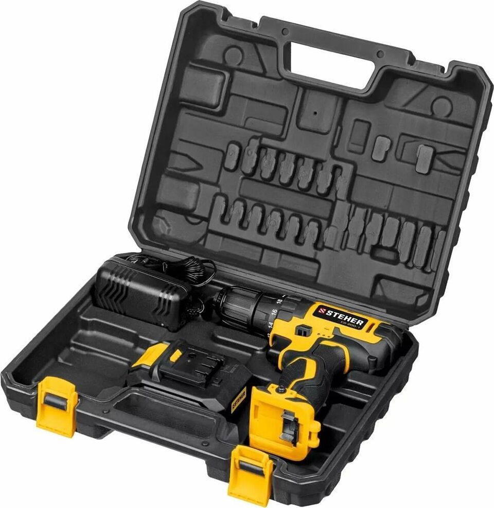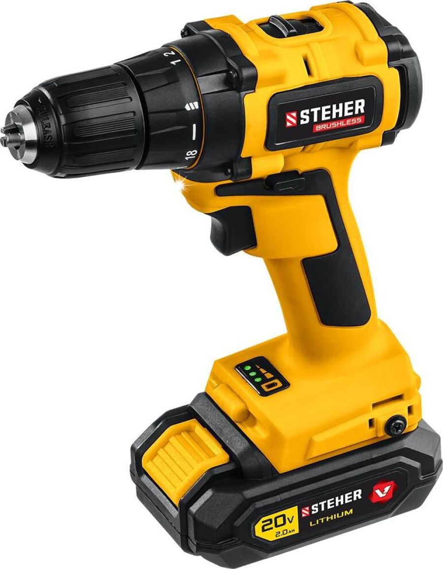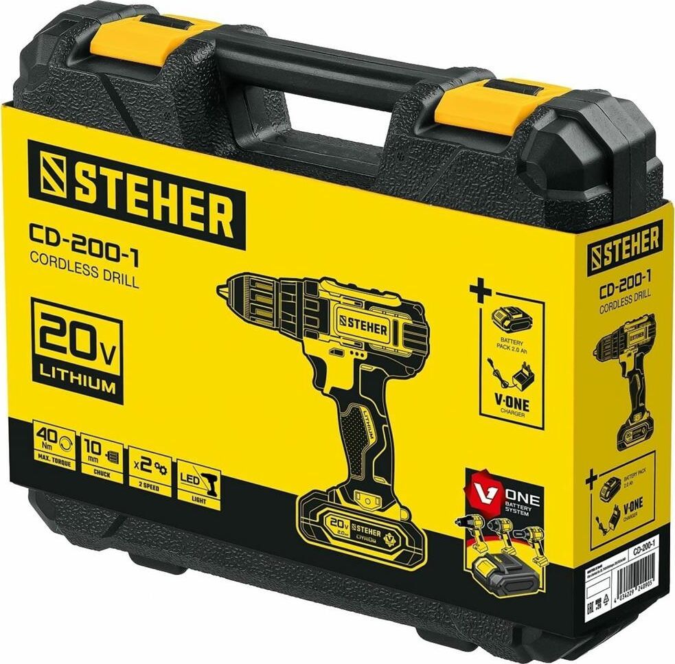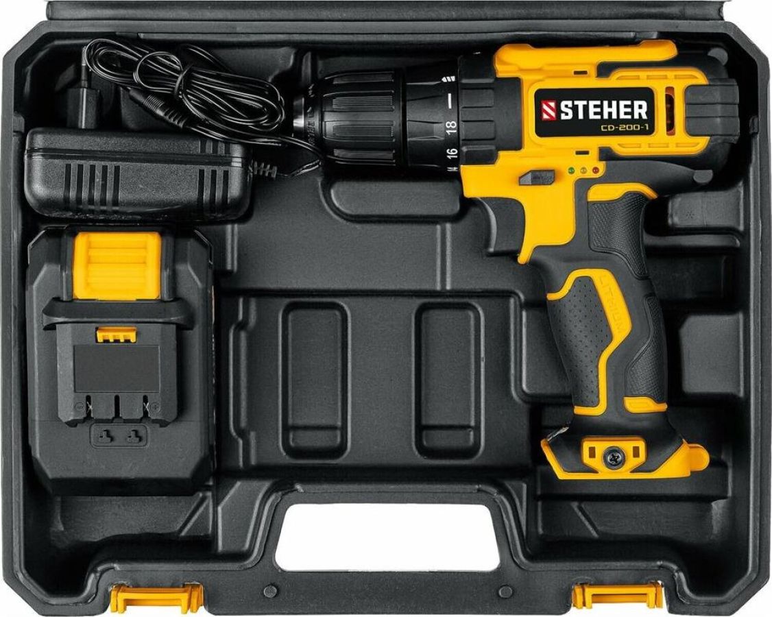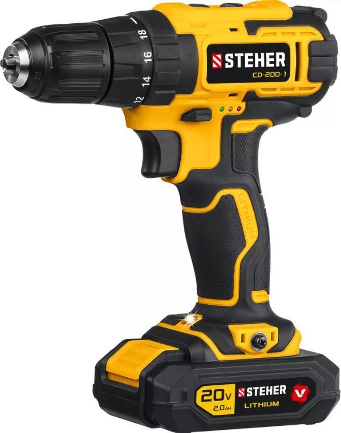 Блокировка шпинделя: нет. Время заряда, ч: 1.5. Габариты, мм: 365x300x115. Диаметр патрона: 0.8-10. Емкость аккумулятора, А*ч: 2. Количество аккумуляторов в комплекте: 1. Комплектация: кейс. Ленточная (магазинная): нет. Наличие подсветки: есть. Наличие реверса: есть. Режим сверления: есть. Тип двигателя: щеточный. Тип патрона: быстрозажимной. Угловая: нет. Частота вращения шпинделя, об/мин: 0-350/0-1350. Тип аккумулятора: Li-Ion. Напряжение аккумулятора, В: 20. Max крутящий момент, Н*м: 40. Мах диаметр сверления (дерево), мм: 25. Max диаметр сверления (металл), мм: 10. Число скоростей: 2. Наличие удара: нет. Вес, кг: 1.2.