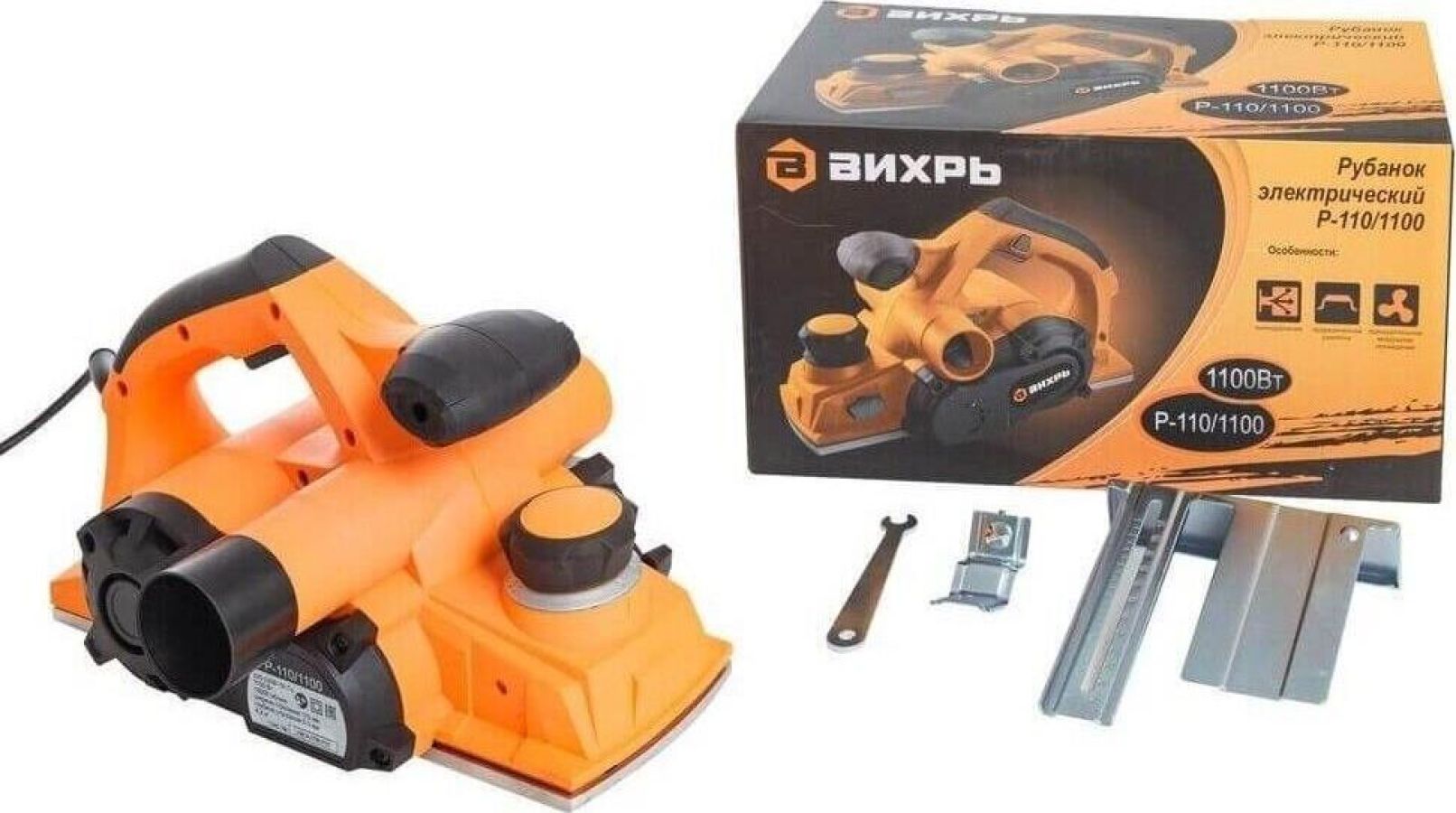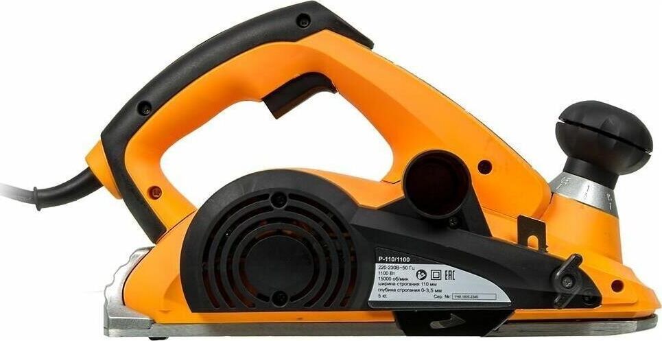 Электрический рубанок Мощность, Вт 1300 Напряжение сети, В 220 Частота, Гц 50 Частота вращения, об/мин 15000 Ширина строгания, мм 110 Глубина строгания, мм 3.5 Питание От электросети Габариты, см 42 х 37,8 х 21,6 Вес в упаковке 5.1 кг Вес без упаковки 5 кг