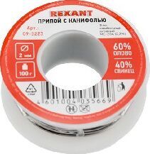 Припой с кан-лью представляет собой пров (диаметром 2 мм) из сплава олова (60 %) и свинца (40 %). Используется в пайке для соед-я деталей между собой и позволяет создать герметичный, механически прочный (устойчивый) шов. Нагреваясь до темп плавления (183...188 °C) припой: расплавляется, смачивает спаиваемый металл и, растекаясь по нему — заполняет место между соединяемыми деталями.