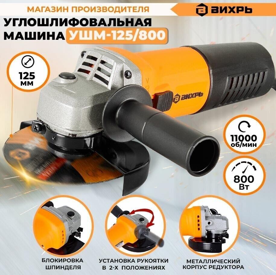 Мощность - 800Вт. Диаметр круга - 125мм. Посадочный диаметр - 22мм. Макс. обороты - 11000об/мин. Резьба шпинделя - М14. Защита от непреднамеренного пуска, поддержание постоянного количества оборотов, работа по бетону(камню).