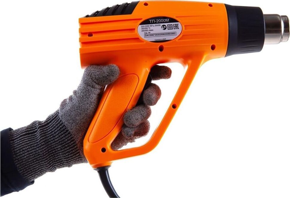 Мощность - 2000Вт. Макс/Мин воздушный поток - 550/250 л/мин. Макс/Мин температура - 550/350 град. Количество скоростей - 3. Регулировка температуры - ступенчатая. Защита от перегрева.