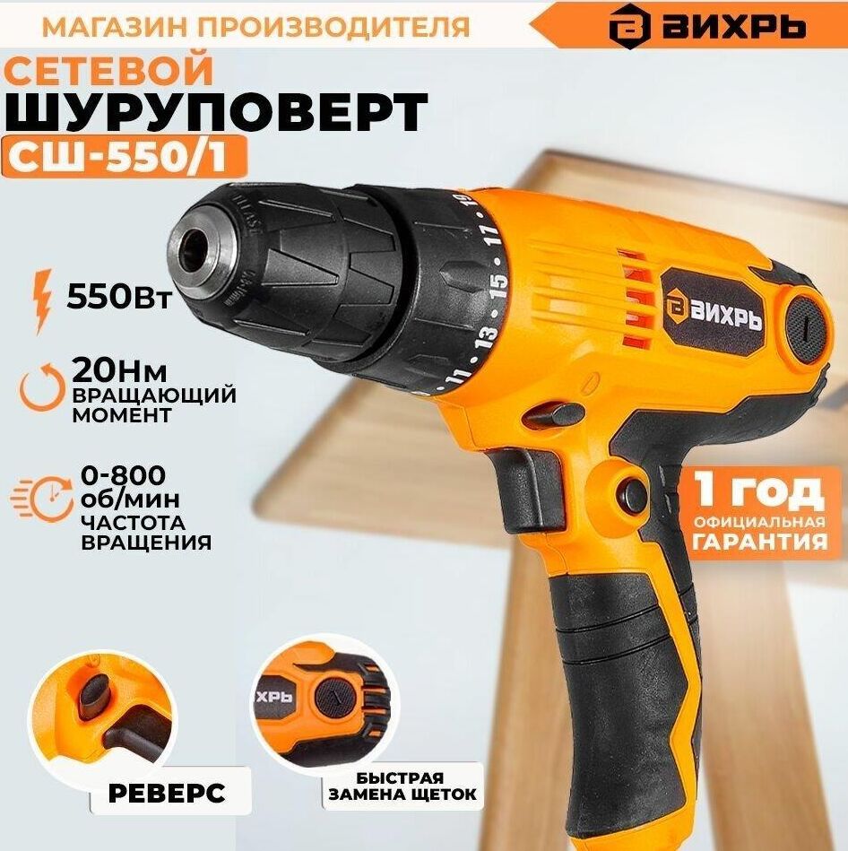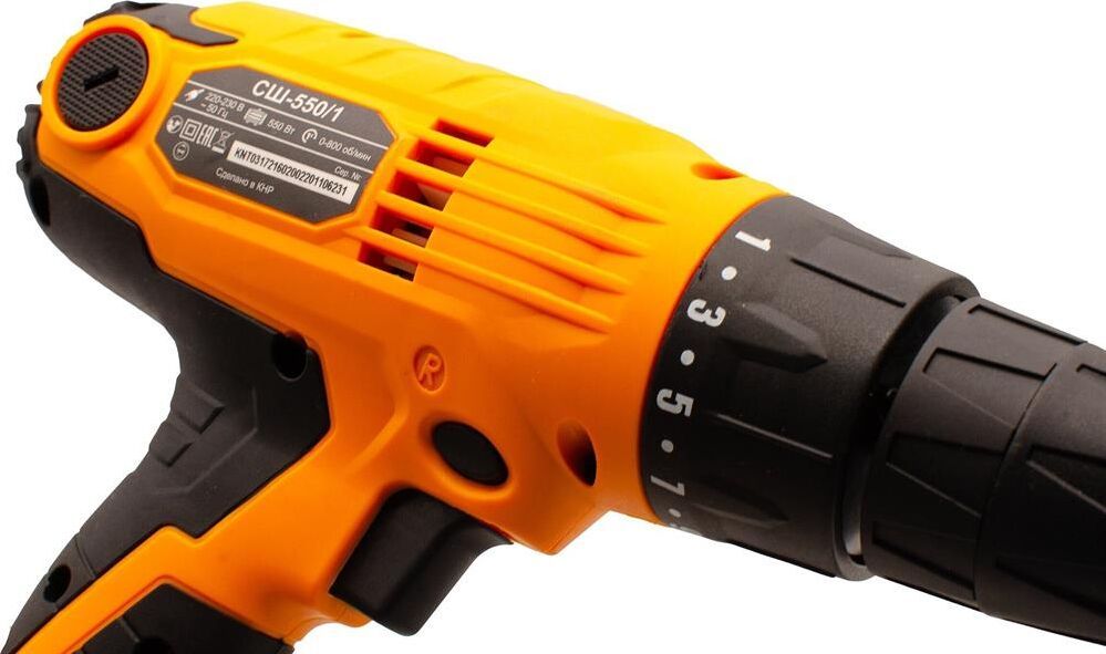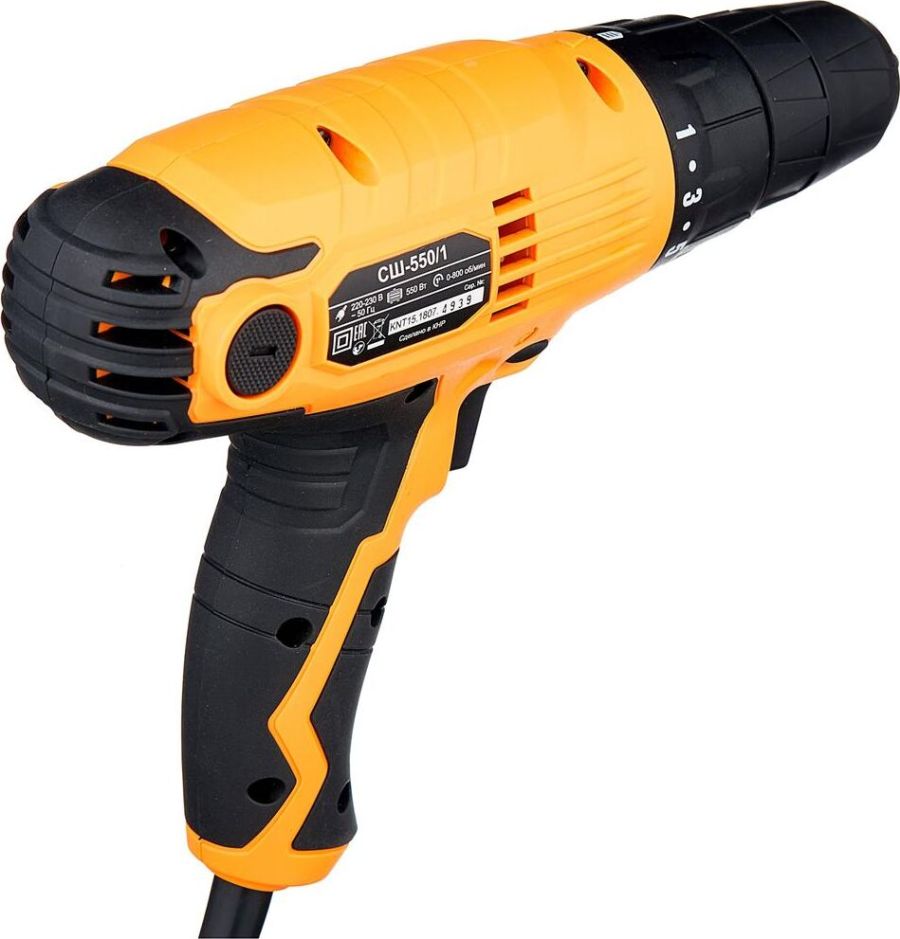 Тип сетевой. Мощность, Вт 550. Тип двигателя щеточный. Ленточные (магазинные) нет. Тип патрона быстрозажимной. Размер зажимаемой оснастки, мм 0.8-10. Число скоростей 1. Регулировка частоты вращения есть. Наличие удара нет. Max крутящий момент , Нм 20. Max диаметр сверления (металл), мм 10. Мах диаметр сверления (дерево), мм 25. Вес нетто, кг 1,3. Частота вращения шпинделя, об/мин 0-800. Наличие реверса есть. Число ступеней крутящего момента 19+1. Жестк. вращ. момент, Нм 20.