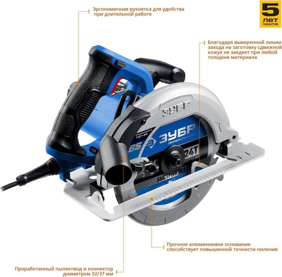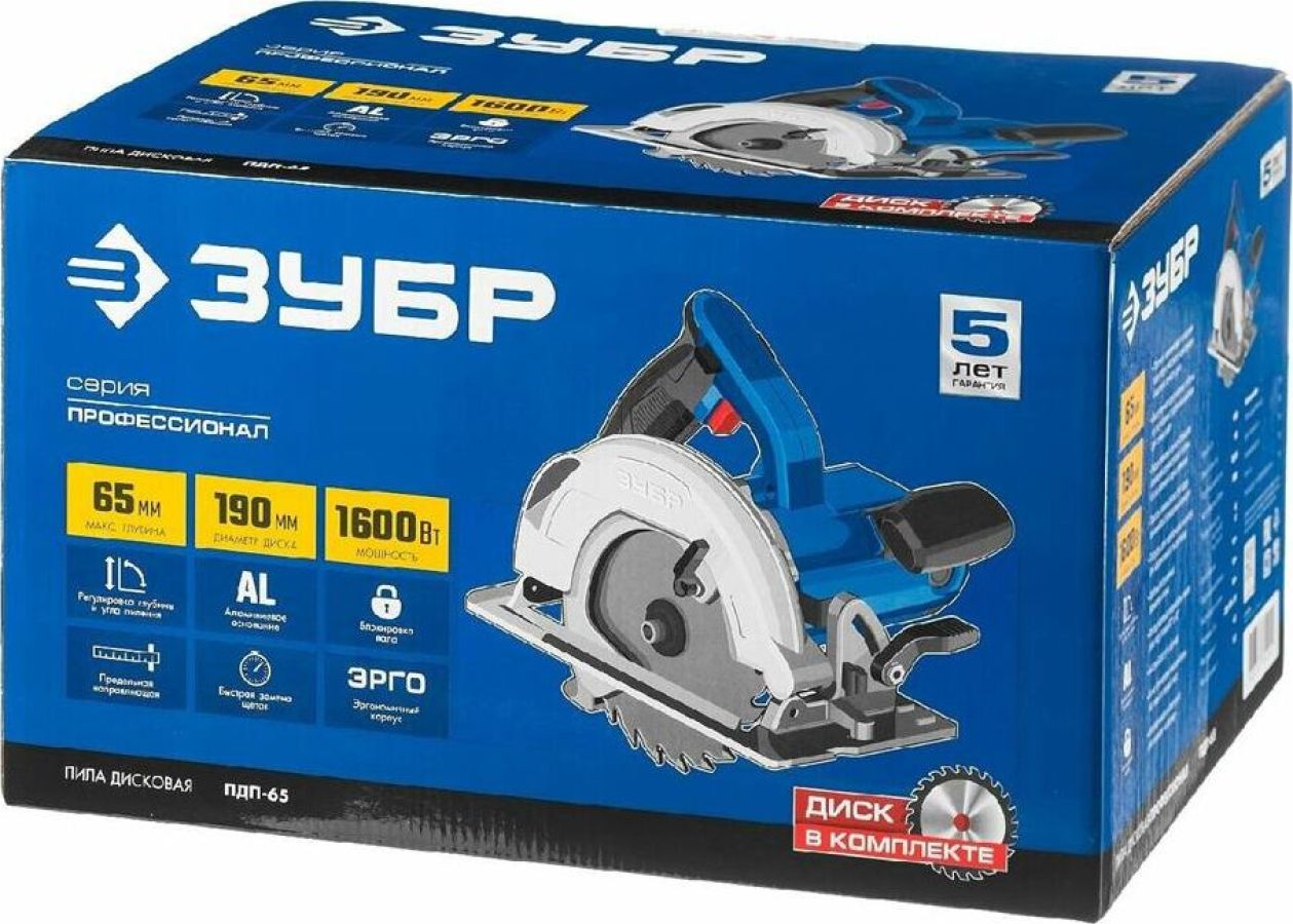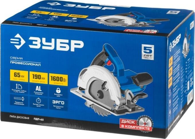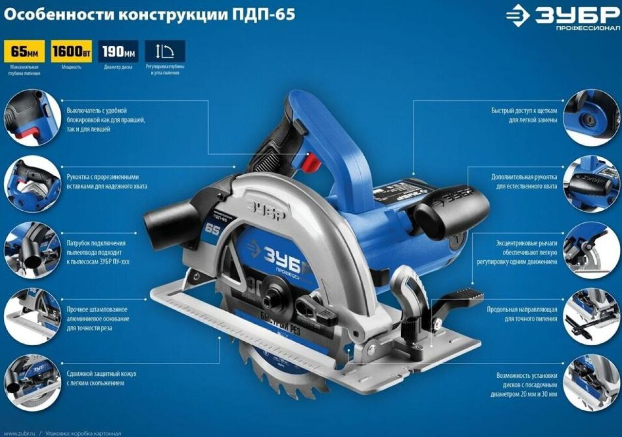 Комплект поставки: диск пильный, направляющая, ключ , Модификация (код производителя): ПДП-65 , Функции и возможности: подключение пылесоса, блокировка шпинделя