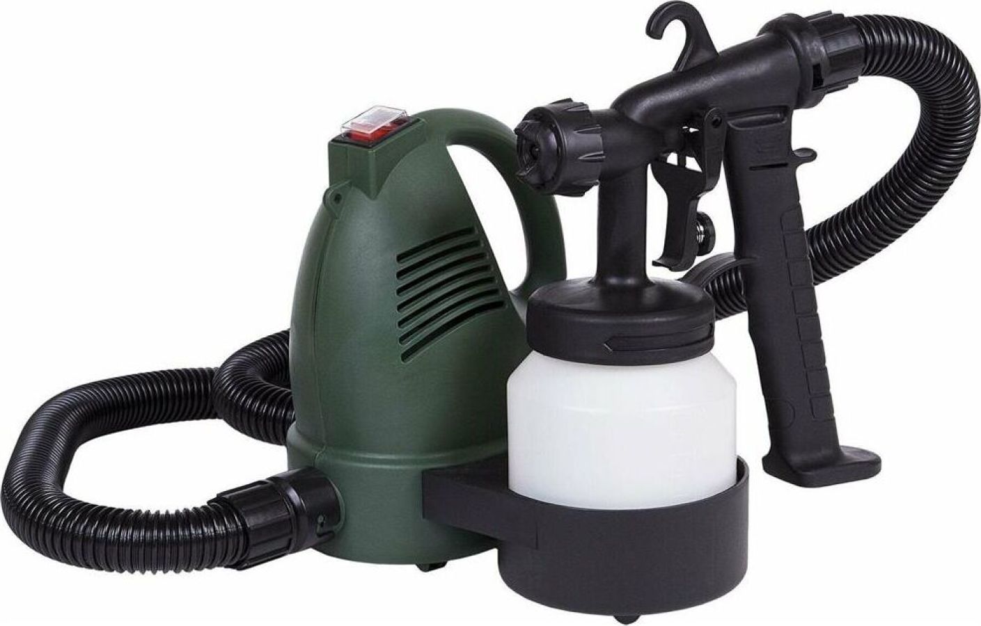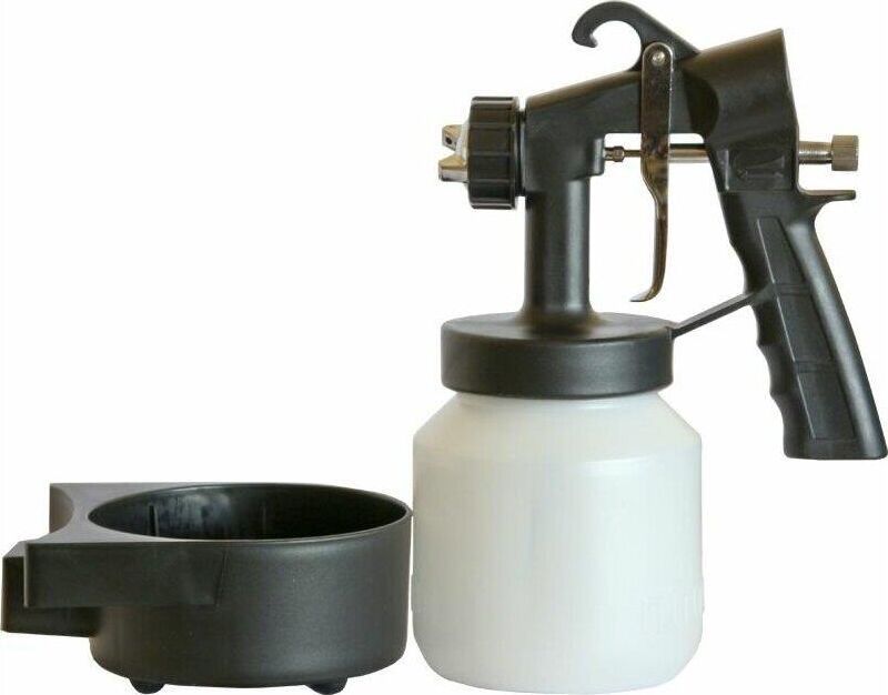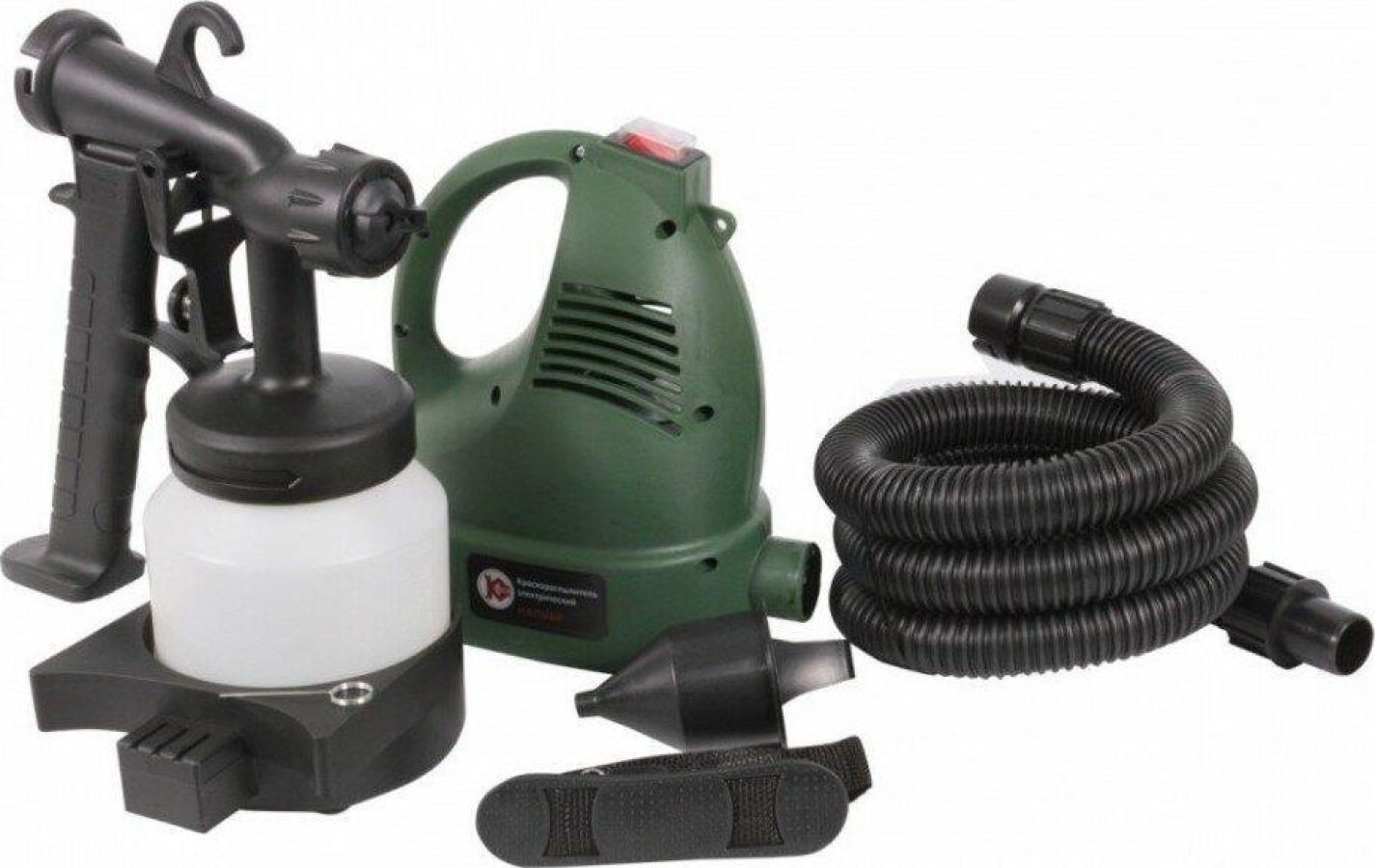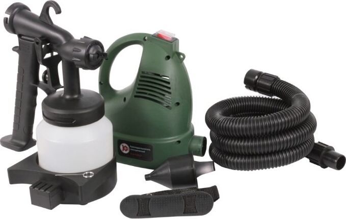 Комплектация: подставка под бачок, ремень для переноски, руководство по эксплуатации, бачок для краски, вискозиметр, гофрированный шланг