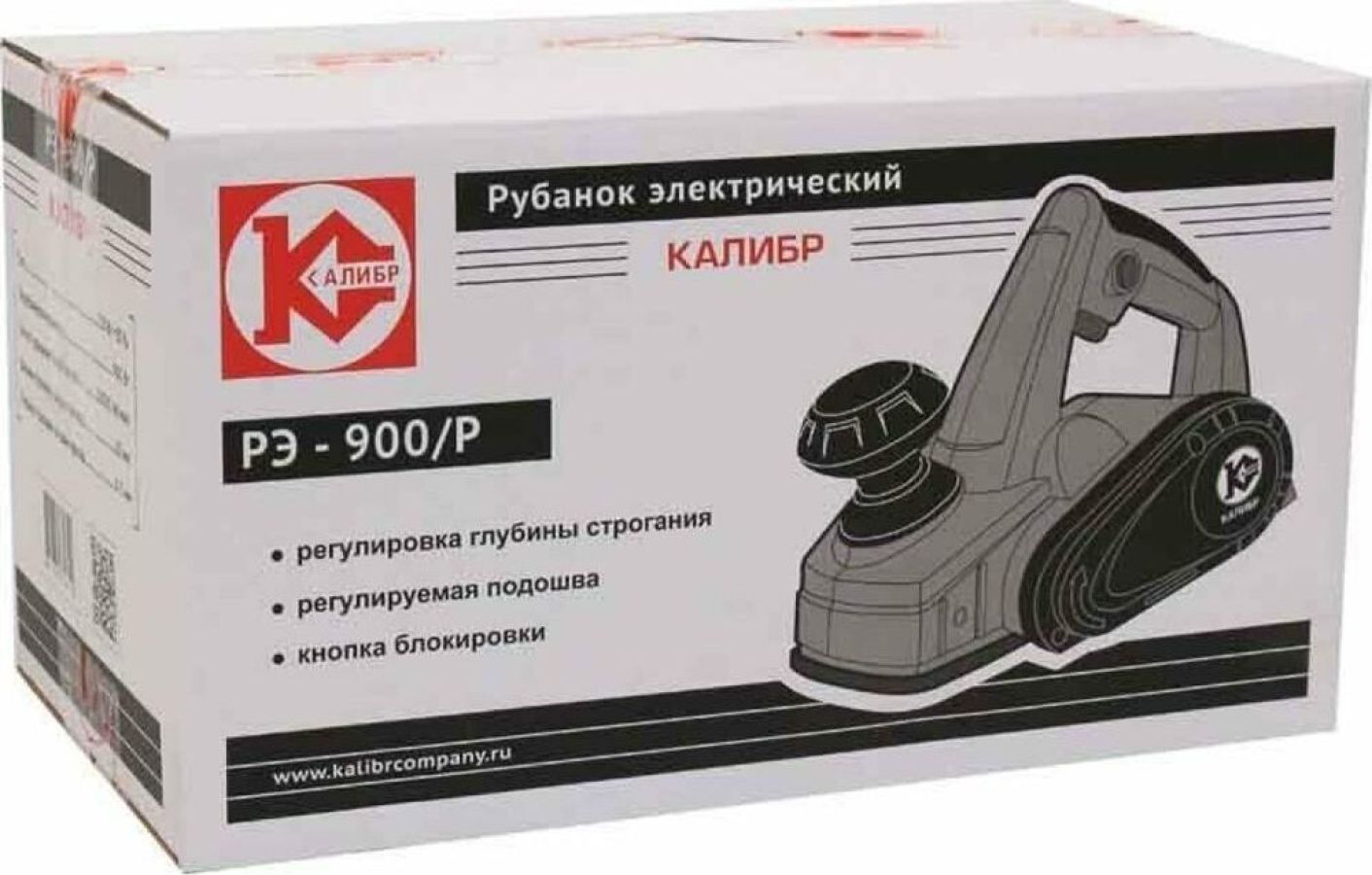 Ручной электрический рубанок Калибр РЭ-900/Р предназначен для строгания пиломатериалов из древесины различных пород.V – образная канавка на рабочей поверхности передней подошвы,позволяют производить снятие фасок при изготовлении элементов деревянных конструкций.Регулировка глубины строгания; Блокировка клавиши выключателя.Характеристики,Потребляемая мощность 900 Вт,Число оборотов на холостом ходу 16500 об/мин,Ширина строгания за один проход 82 мм,Глубина строгания 0-3 мм,Размеры ножа (ДхШхТ) 82х5.7х1.2 мм,Электродвигатель однофазный коллекторный,Тип передачи ремённая,Класс безопасности (ГОСТ Р МЭК 60745-1-2011) II,Длина шнура питания,не менее 2 м,Номинальное напряжение/Частота 220 В/50 Гц,Габариты в упаковке (ДхШхВ) 305х170х170 мм,Вес (брутто/нетто) 3.0/2.7 кг.