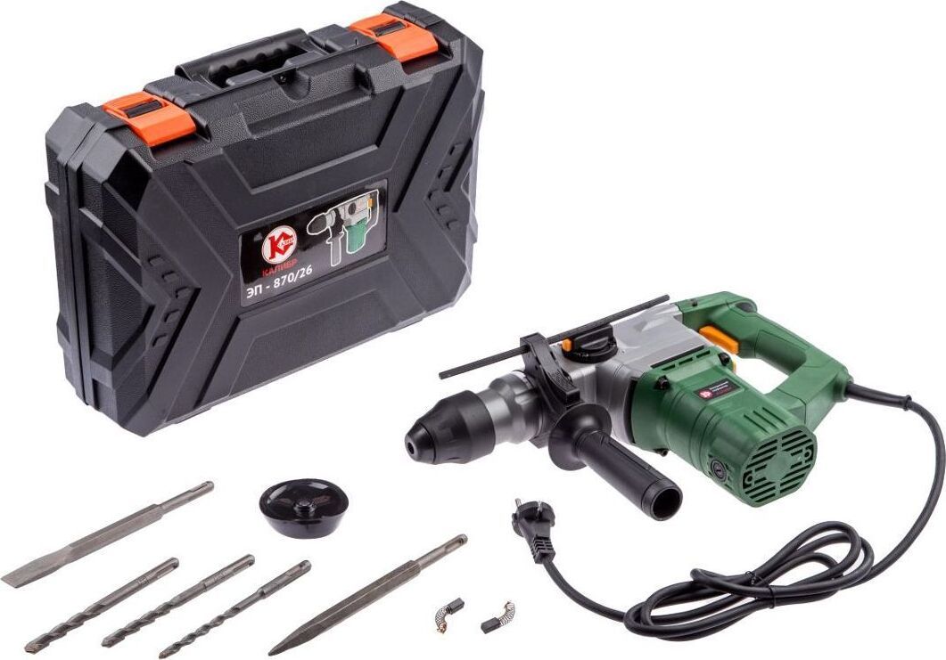 Потребляемая мощность 870 Вт Частота ударов 0-4450 уд/мин Максимальный диаметр сверления: бетон х металл х дерево 26 х 13 х 40 мм Энергия единичного удара 4,5 Дж Число оборотов на холостом ходу 0-930 об/мин Система зажима SDS-plus Ключевой патрон 1/2-20UNF, диаметр сверла 1,5-13 мм Максимальный уровень вибрации (по бетону в режиме долбления) 10,65 м/с2 Уровень звукового давления 101 дБ(А) Класс безопасности (ГОСТ Р МЭК 60745-1-2011) II Электродвигатель Однофазный коллекторный Номинальное напряжение/Частота 230 В/50 Гц Габариты в упаковке (ДхШхВ) 390х110х300 мм Вес (брутто/нетто) 7,2/5,1 кг