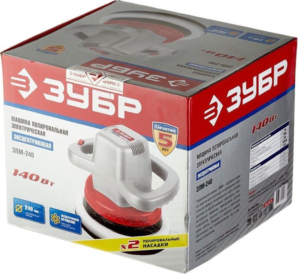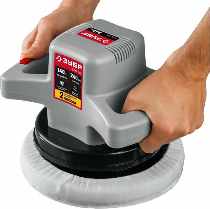 Полировальная машина ЗУБР ЗПМ-240 предназначена для полировки различных поверхностей. Полировальный круг имеет достаточно большой диаметр - 240 мм, что значительно снижает давление на обрабатываемую поверхность. Особый тип эксцентрикового механизма имитирует полирование вручную, а также улучшает качество и и уменьшает время работы. Специальный водоотталкивающий верхний слой не позволяет полироли впитываться в полировальную тарелку. Это повышает качество полировки и уменьшает расход полироли. Технические характеристики Зубр ЗПМ-240 Мощность, Вт 120 Напряжение, В 220 Диаметр диска, мм 240 Электр. регулировка оборотов нет Плавный пуск нет Поддержание постоянных оборотов под нагрузкой нет Комплектация коробка Вес, кг 2,6 Число оборотов, об/мин 0-3200