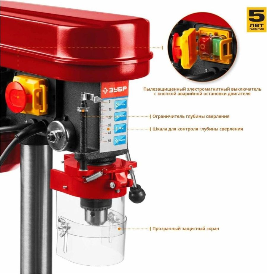Мощность, Вт 350 Диаметр сверла, мм 1.5-13 Ход шпинделя, мм 50 Частота вращения шпинделя, об/мин 580-2600 Число скоростей 5 Плавная регулировка оборотов да Расстояние шпиндель - стойка, мм 104 Расстояние шпиндель - основание, мм 290 Расстояние шпиндель - стол, мм 200 Размер рабочего стола, мм 160х160 Размер основания, мм 314х200 Конус шпинделя MT2 Посадка патрона В16 Тип патрона кулачковый Материал основания чугун Кнопка аварийной остановки есть Напряжение питания, В/Гц 220±10% /50 Габариты, см 45х35х22.5 Масса изделия, кг 16