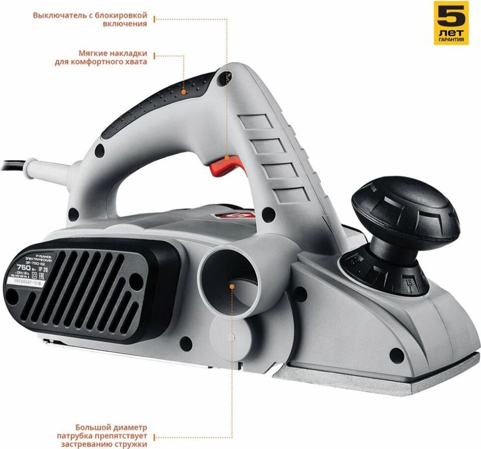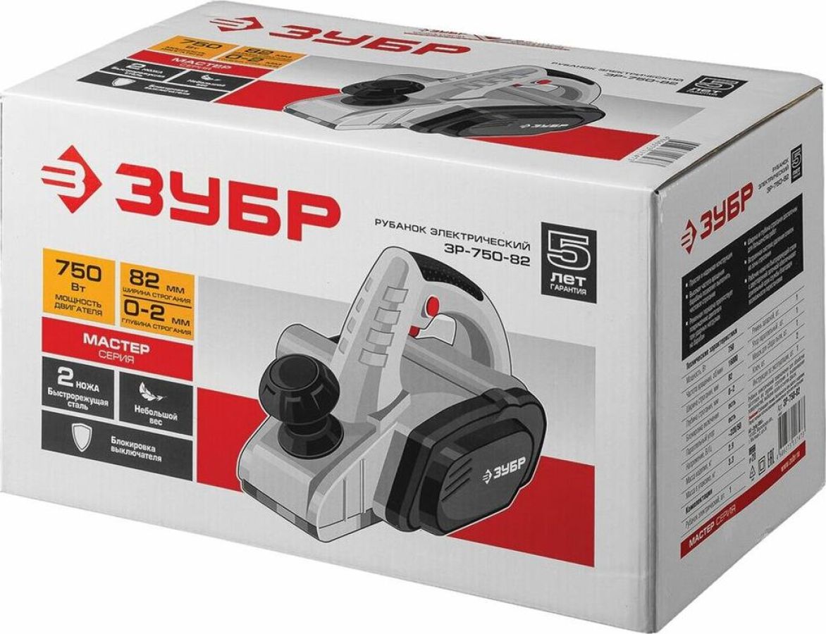 Мощность, Вт 750 Частота вращения, об/мин 16000 Ширина обработки, мм 82 Глубина строгания, мм 0-2 Блокировка включения есть Параллельный упор есть Система удаления опилок есть Длина кабеля, м 2