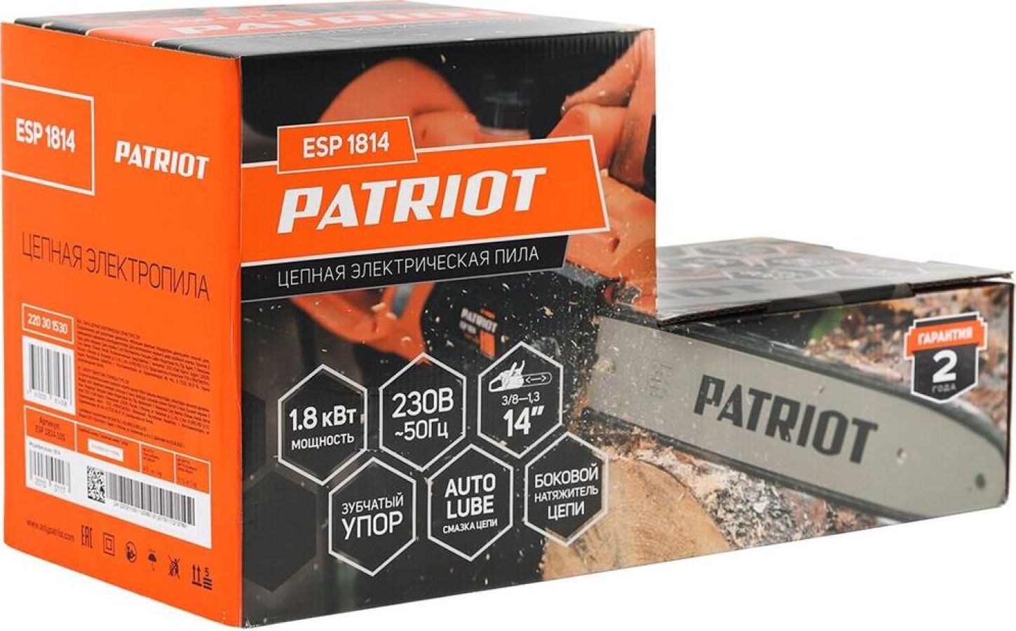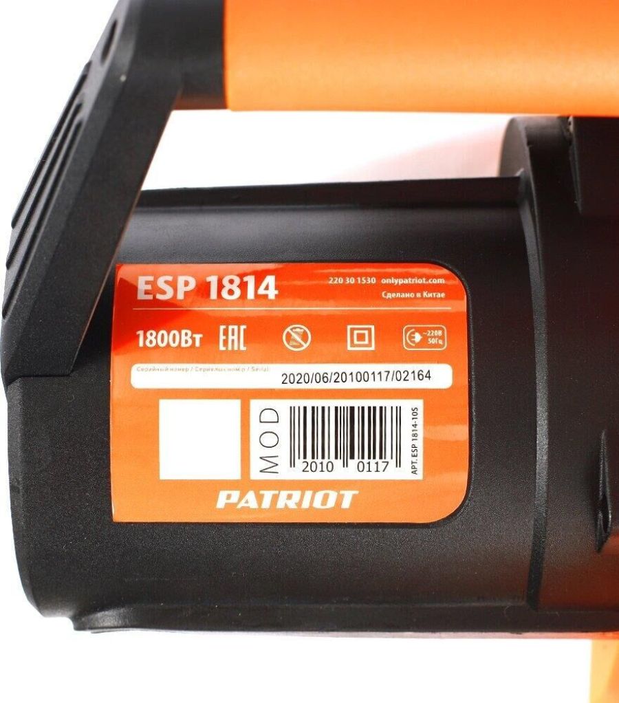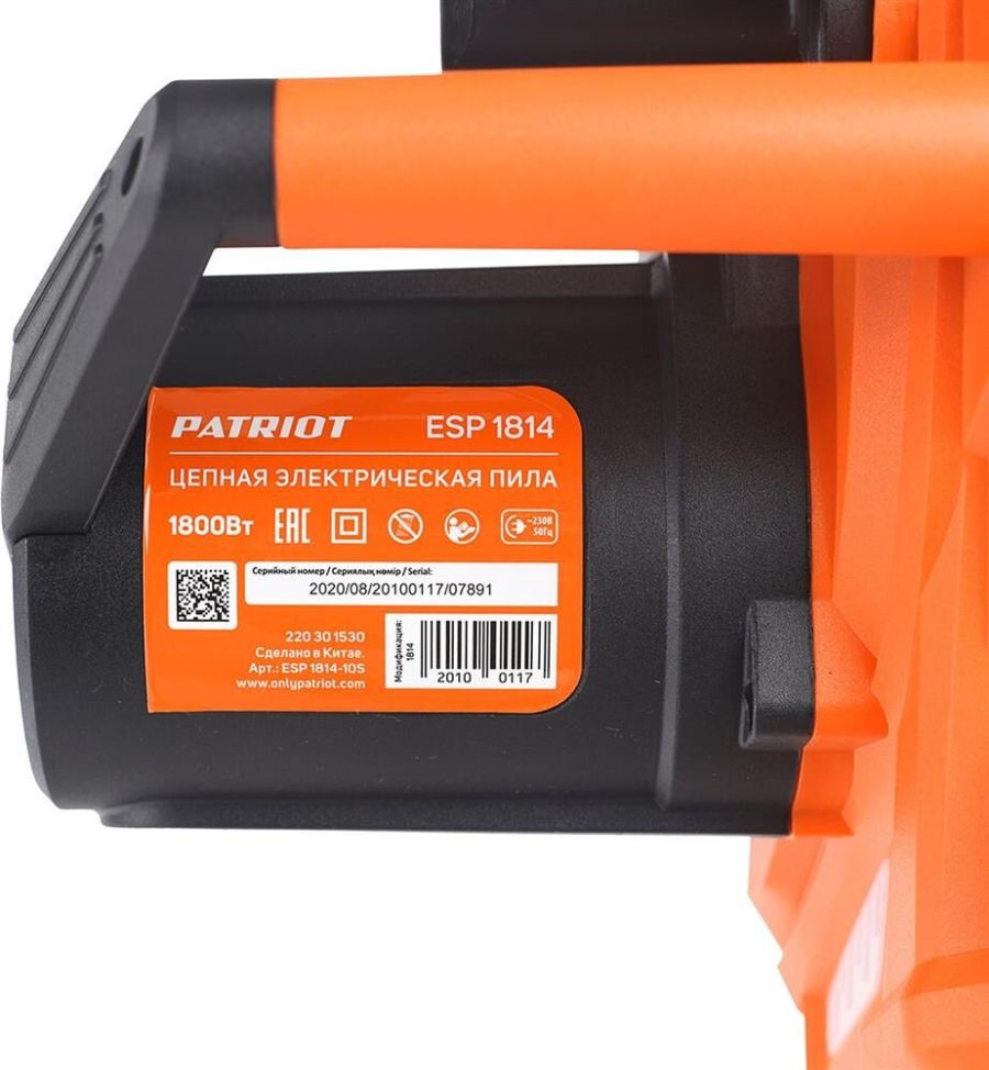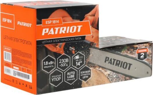 Комплект поставки: цепь, защитный чехол, шина, набор ключей, пила цепная электрическая Patriot ESP 1814 , Модификация (код производителя): 220 30 1530 , Емкость масляного бака: 0.32 л , Функции и возможности: тормоз цепи, плавный пуск
