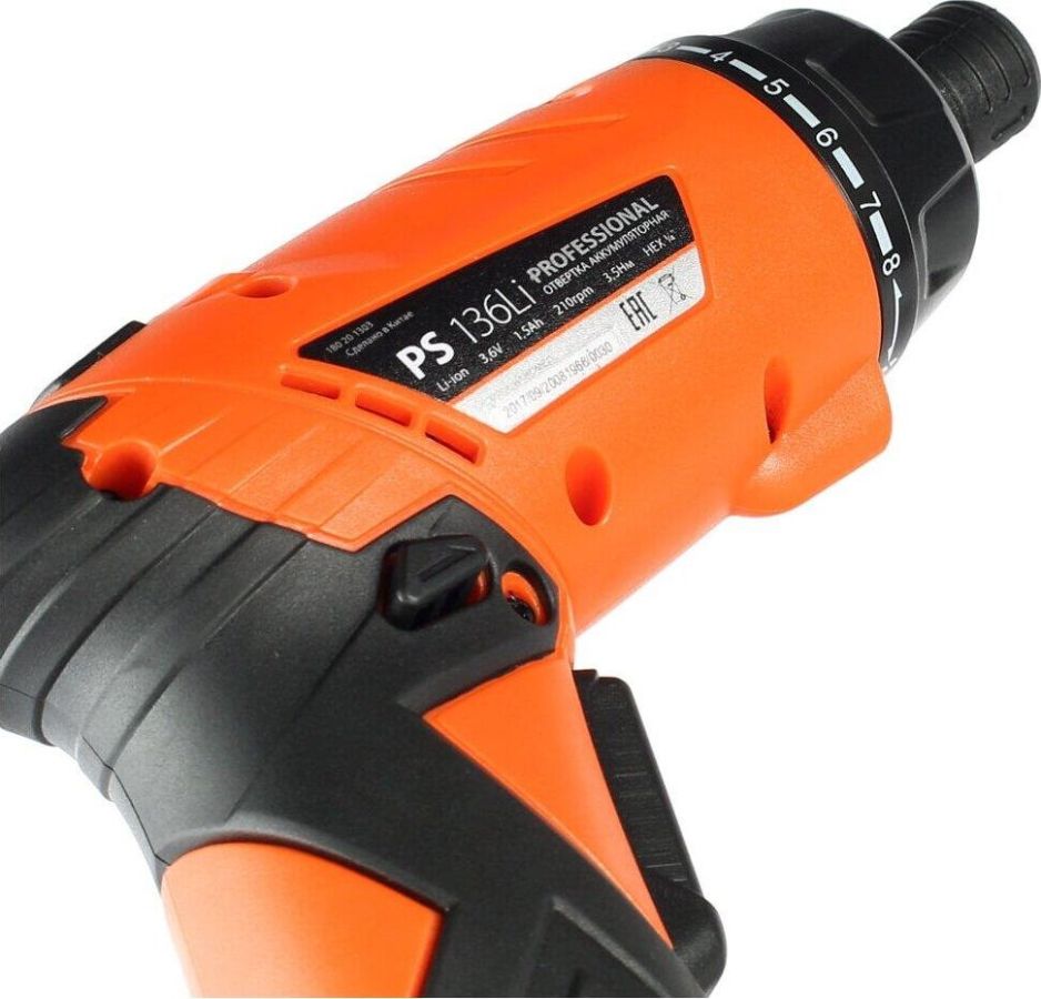 Напряжение аккумулятора, В (Max) 3.6, Емкость аккумулятора, А*ч 1.5, Макс. крутящий момент, Нм 3.5, Количество регулировок крутящего момента 8+1, Количество скоростей 1, 1 скорость, об/мин 0-210, Наличие реверса, Регулировка частоты вращения, Блокировка шпинделя, Наличие подсветки, Индикатор заряда батареи, Система защиты аккумулятора BSC, Прорезиненная рукоятка, Количество аккумуляторов в комплекте, шт 1