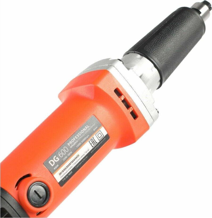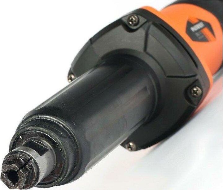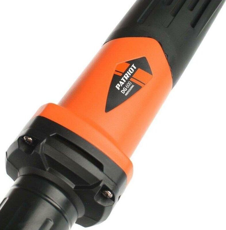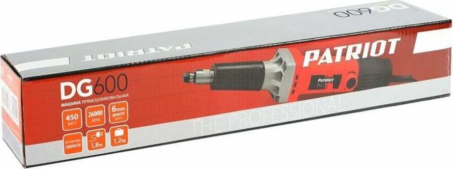 Прямошлифовальная машина PATRIOT DG 600 110301600 предназначена для полировки и шлифовки сложных и труднодоступных поверхностей, удаления заусенцев и ржавчины. Для быстрой смены оснастки, а также для ее надежной фиксации данная модель оснащена цанговым зажимом 6 мм. Удобство при продолжительной работе обусловлено наличием фиксации кнопки включения. Прорезиненная рукоятка ExtraGrip отвечает за надежный хват и полный контроль над инструментом в процессе работы. Конструкция позволяет быстро заменить угольные щетки без обращения в сервисный центр. Технические характеристики PATRIOT DG 600 110301600 Размер цанги, мм 6 Частота вращения шпинделя, об/мин 30000 Мощность, Вт 600 Вес, кг 1,8 Гибкий вал в комплекте нет Комплектация коробка Габариты, мм 435х90х100