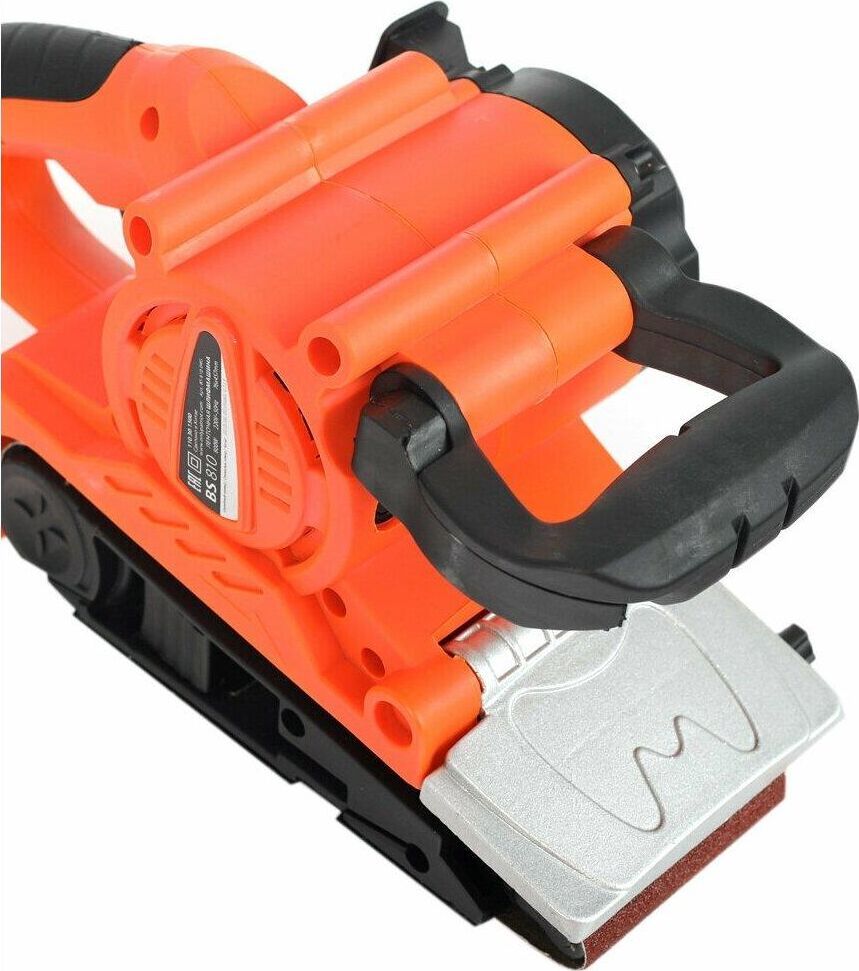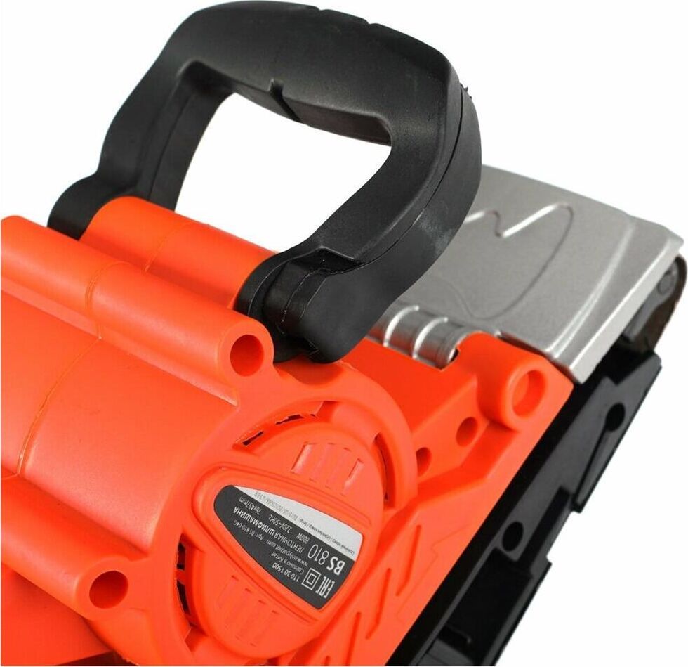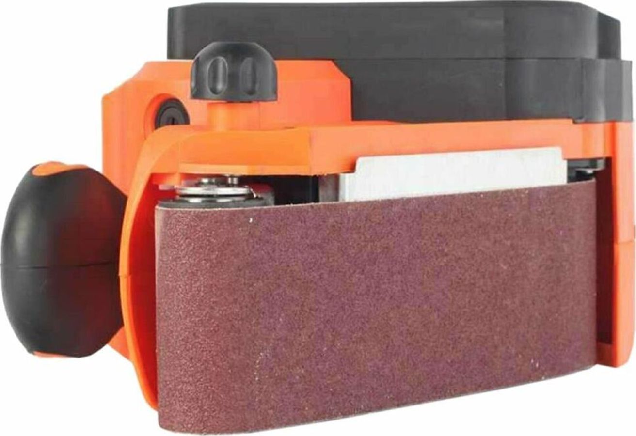 Линейная скорость полировальной ленты, м/мин 200-380, Размер полировальной ленты, мм 533х76, Шлифовальная поверхность, мм 76х130, Потребляемая мощность, Вт 900, Регулировка частоты вращения, Фиксатор продолжительной работы, Прорезиненная рукоятка, Прорезиненный морозостойкий кабель.