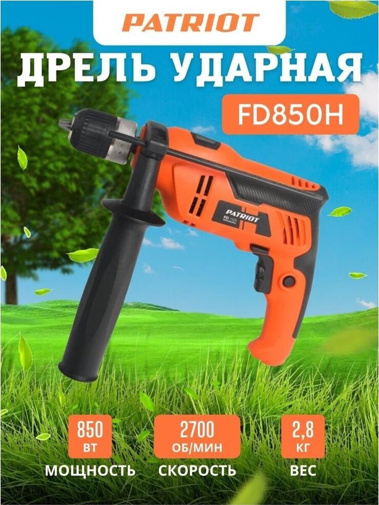 Макс. количество ударов, уд/мин 43200, Частота вращения, об/мин 0-2700, Тип патрона быстрозажимной, Диаметр патрона, мм 13, Регулировка скорости, положений, Потребляемая мощность, Вт 850, Наличие реверса, Режим сверления с ударом, Защита от пыли, Прорезиненная рукоятка, Прорезиненный морозостойкий кабель.