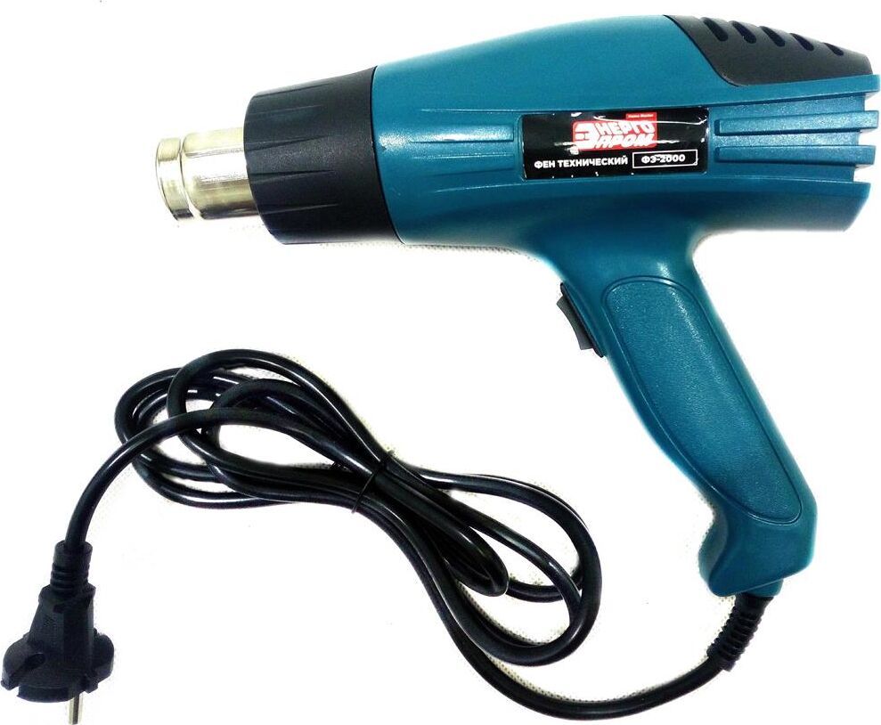 Напряжение питания: 230 В. Частота тока: 50 Гц. Мощность: 2000 Вт. Регулировка температуры 350 °C (I), 550 °C (II). Воздушный поток 300 л/мин (I), 500 л/мин (II). Масса: 0,8 кг.