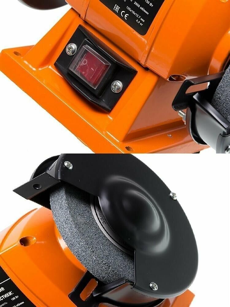 Станок - точильный. Модулей вращения - 2шт. Рабочий элемент - диск. Напряжение сети - 220В. Мощность двигателя - 150Вт. Заточка - универсальная. Диаметр диска - 125мм. Диаметр посадочного отверстия - 16мм. Толщина диска - 12,7мм. Скорость вращения диска - 2950об/мин.