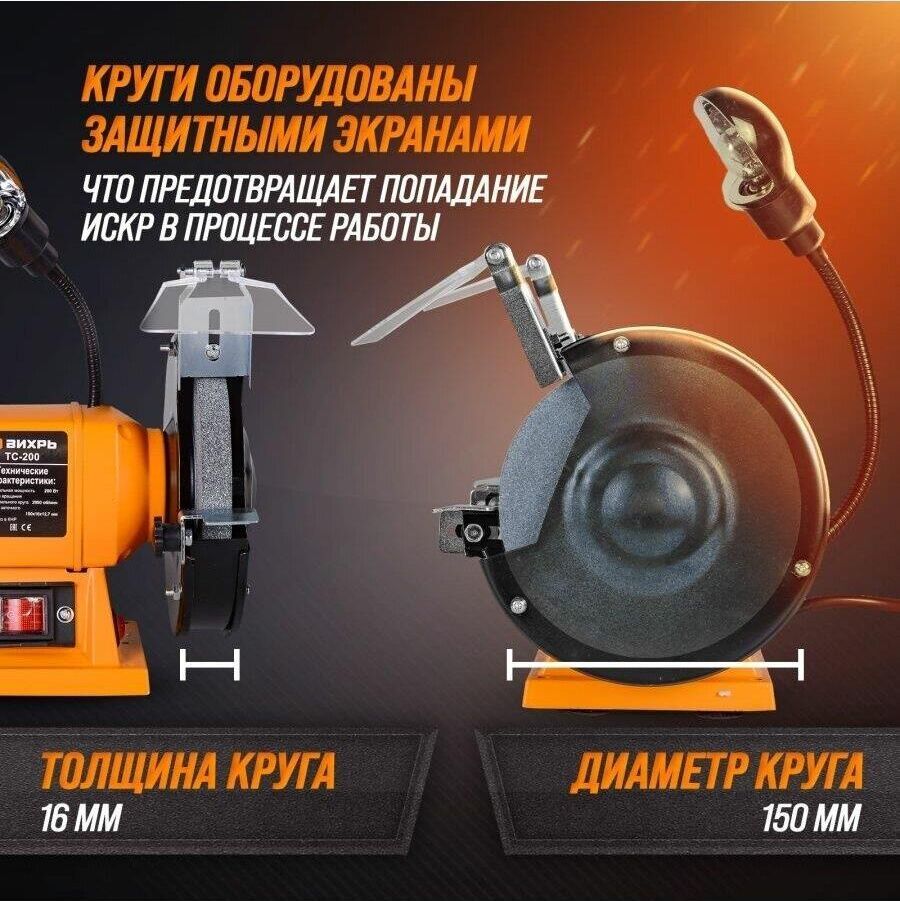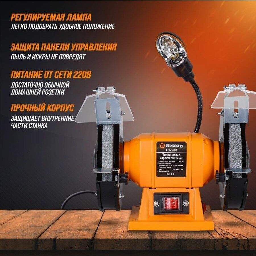 Тип для инструмента. Передача прямая. Напряжение, В 220. Частота вращения шлиф. круга, об/мин 2950. Диаметр диска, мм 150. Мощность двигателя, Вт 200. Посадочный диаметр, мм 12.7. Частота вращения второго шлиф. круга, об/мин 2950. Размер заточного круга, мм 150. Размер второго заточного круга, мм 150. Толщина второго круга, мм 16. Посадочный диаметр второго круга 12.7. Вес нетто, кг 5,2. Подсветка да. Наличие защитного экрана да.