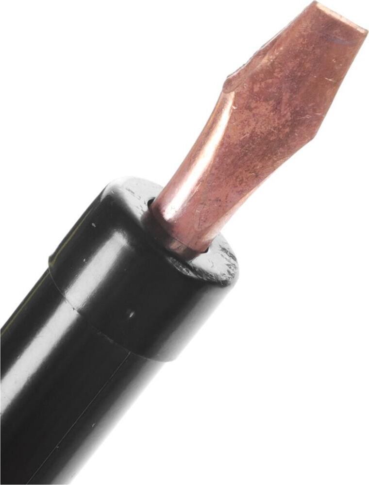 Электрический паяльник со спиральным нагревателем (ЭПСН) питается напрямую от сети 220 В, рабочая темпа рабочего стержня 500...540 °С, время разогрева до рабочей темп — 8 мин., класс защиты — II. Размеры жала: Диаметр: 7,4 мм. Длина: 85 мм. Габаритные размеры без шнура: 255x26x26 мм.