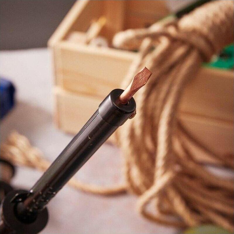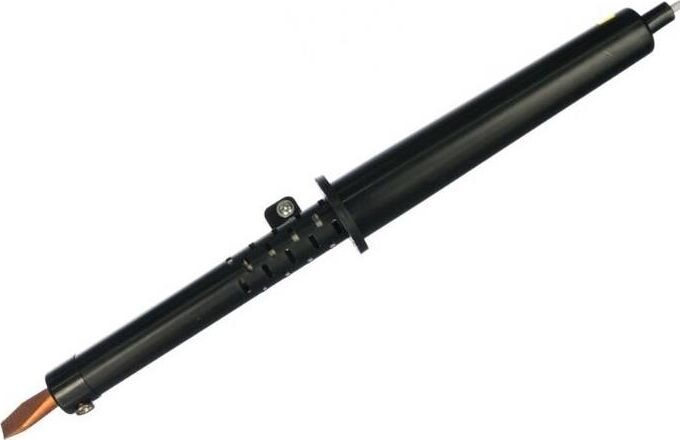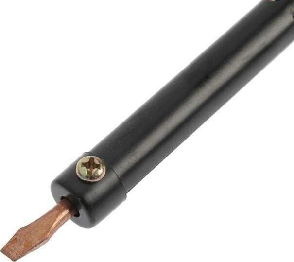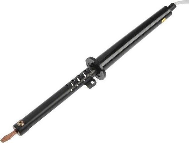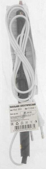 Электрический паяльник со спиральным нагревателем (ЭПСН) питается напрямую от сети 220 В, рабочая темпа рабочего стержня 340...400 °С, время разогрева до рабочей темп — 7 мин., класс защиты — II. Размеры жала: Диаметр: 4,5 мм. Длина: 67 мм. Габаритные размеры без шнура: 250x24x24 мм.