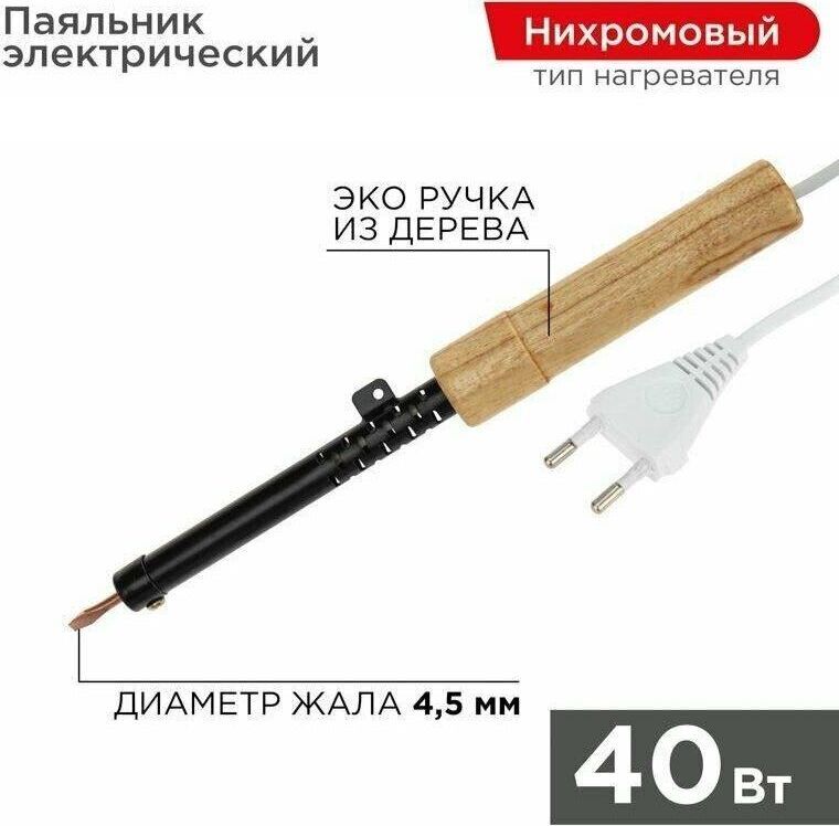 Паяльник REXANT (12-0240) электрический паяльник 40Вт, дерево