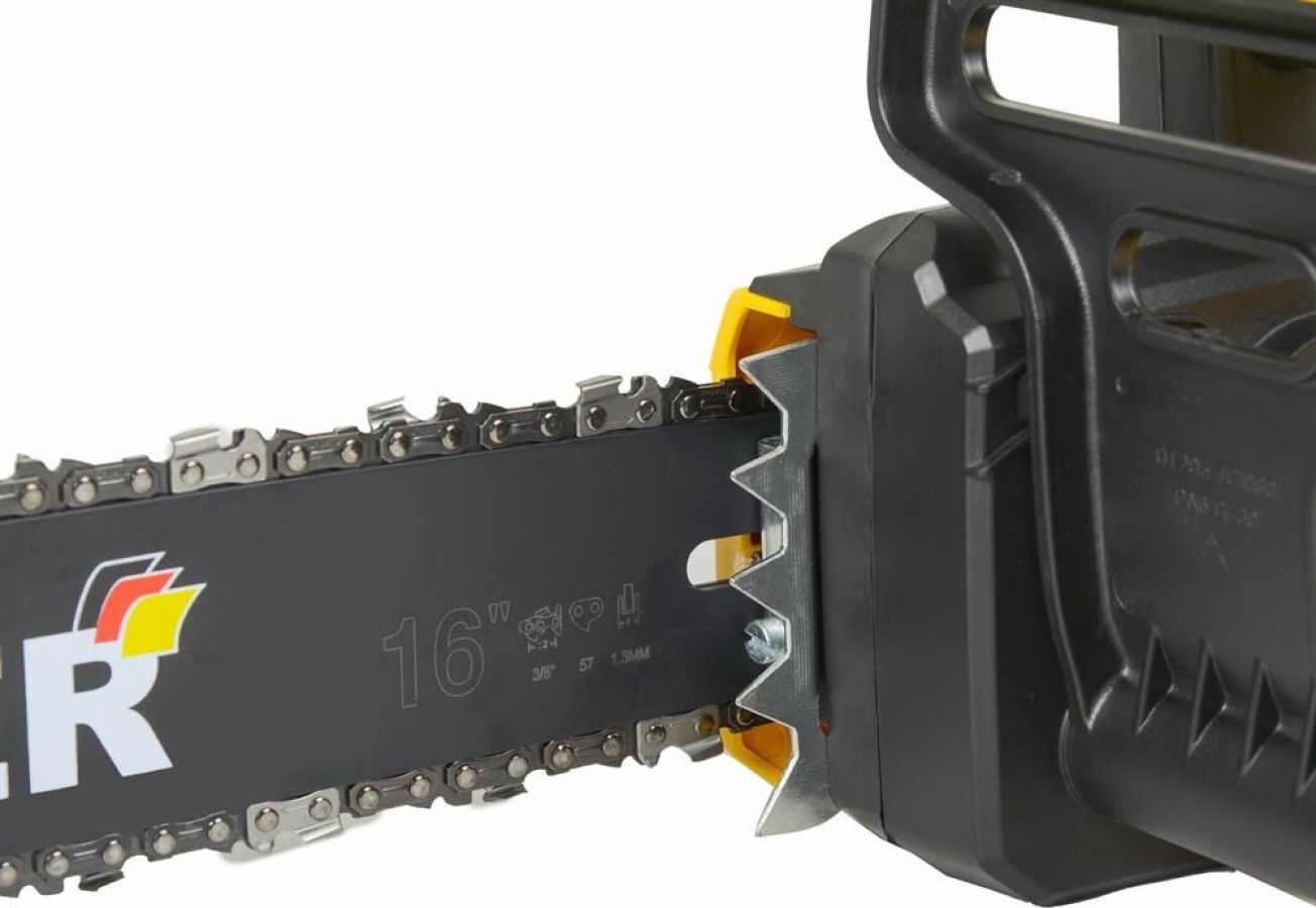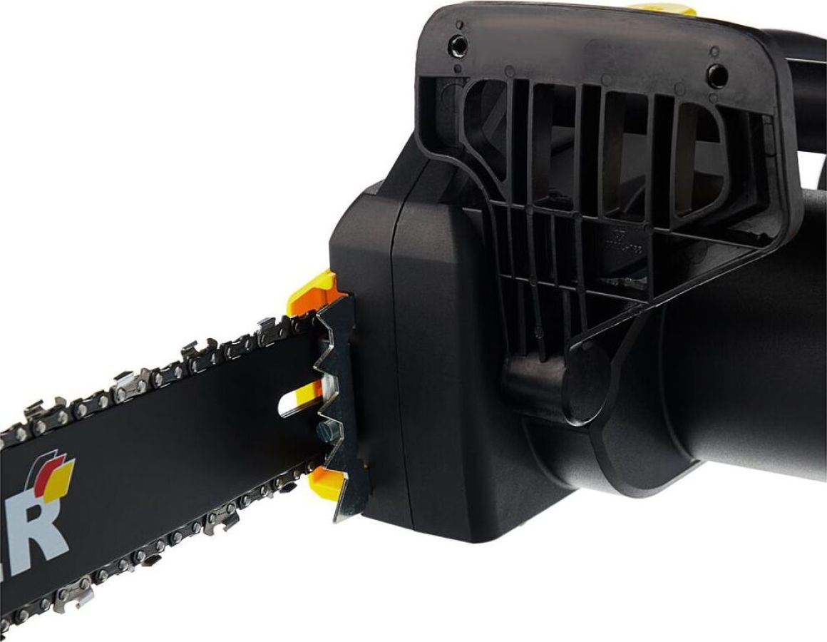 Шаг цепи 3/8. Толщина звена, мм 1,3. Длина шины, дюйм 16. Тип привода Прямой. Тип затяжки цепи Стандартная, боковая. Тип двигателя Электрический. Напряжение сети, В/Гц 220-230/50. Скорость пиления, м/с 13.6. Тормоз цепи Да. Автоматическая смазка цепи Да. Мощность, Вт 2000. Длина шины, мм 400. Количество звеньев, шт. 57.