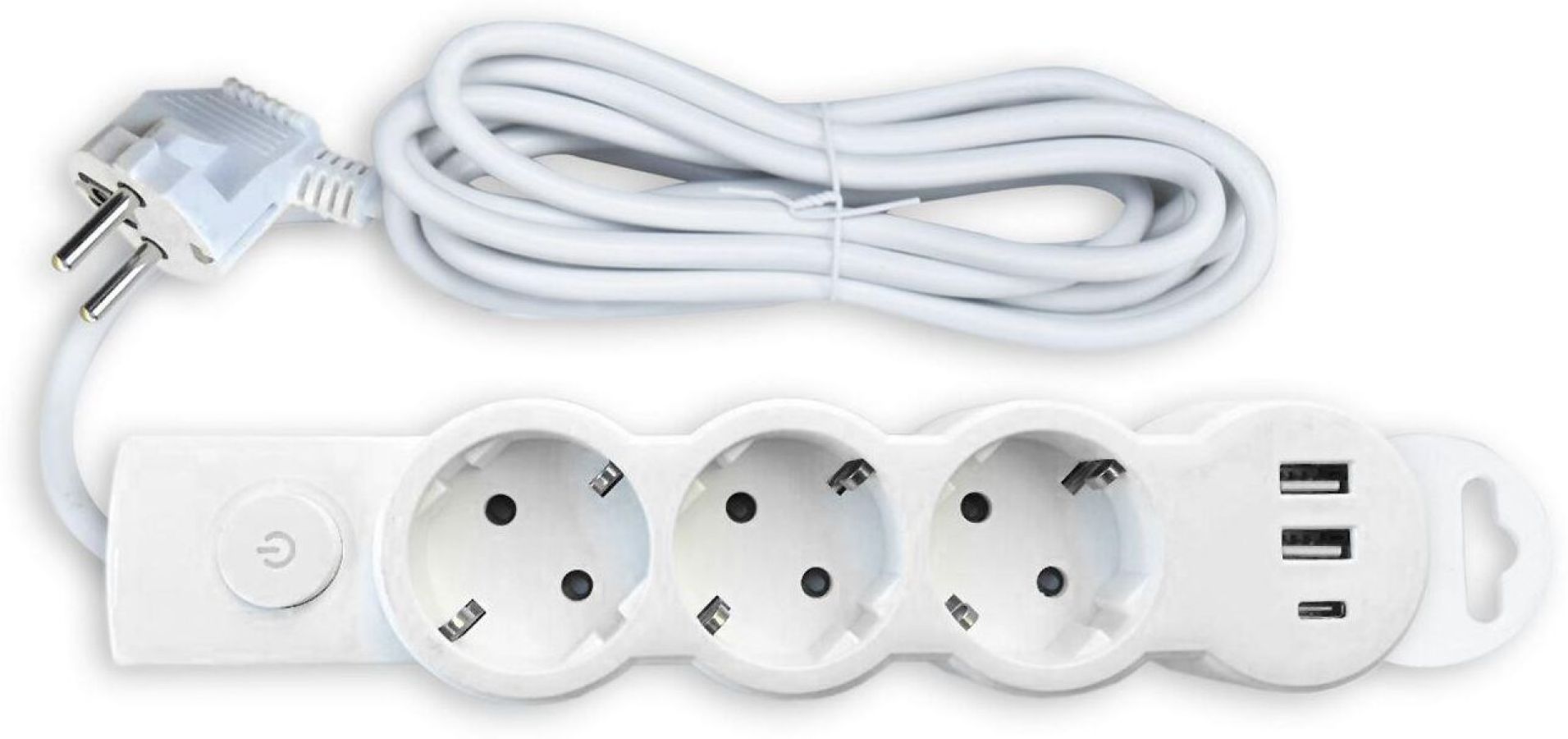 Номинальное напряжение, частота: 230В, 50Гц / максимальный ток нагрузки: 16А / максимально допустимая суммарная мощность нагрузки: 3500Вт (3,5 кВт) / выход USB: 5 В, 2.1 А / максимальная допустимая мощность нагрузки USB портов: 2100 мА (2.1 А) / тип провода (кабеля): ПВХ / сечение кабеля: 3 х 1,00 мм² / длина провода: 1,5 м / количество штепсельных гнёзд: 3 / защитные шторки: да / количество портов: 2 USB Type-A, 1 USB Type-C / заземляющий контакт: да / материал деталей контактных групп: латунь / материал колодки: пластик PP / степень защиты IP20 / кнопка питания со светодиодной подсветкой / крепление «Quick Fix» /