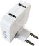 Номинальное напряжение, частота: 230В, 50Гц / максимальный ток нагрузки: 10А / максимально допустимая суммарная мощность нагрузки: 2500Вт (2,5 кВт) / количество розеток (гнёзд): 2 / разъём USB 2.0: 2 х 5В 2.1А / защитные шторки: нет / заземляющий контакт: нет / степень защиты IP20 / материал корпуса: ABC-пластик / цвет корпуса: белый / конструкция разветвителя - поворотная