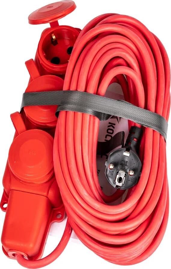 Удлинитель колодка КОСМОС 10м 3 гнезда КГ 3*2.5 мм 16A 250В 4000Вт каучук IP44 красный Россия УХз16