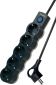 "Бытовой удлинитель черного цвета с кнопкой включения, корпус выполнен из прочного ABS пластика с 5 гнёздами, которые имеют защитные шторки, 10 А, 1.5м ПВС провод 3х1 мм2, темп. Эксплуатации 1...35 °C, ном. Частота 50 Гц, напряжение 220В, IP20, макс. Мощность 10А 2200 Вт.