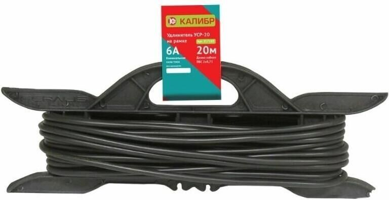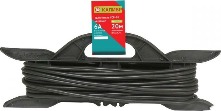Удлинитель электрический "Калибр УСР-20" на рамке, предназначен для работы в сетях переменного тока напряжением 230±10%, ~50 Гц. При помощи удлинителя легко подключить удалённые от стационарной розетки электроприборы, имеющие шнур с плоской или круглой вилкой. Незаменим - на стройке, садовом участке, в промышленности и в быту. *в зависимости от поставки, внешний вид рамки может отличаться от представленного на фотографии. Сечение 0,75 мм2. Максимальная нагрузка 6 А, 1300 Вт. Длина кабеля 20 м.