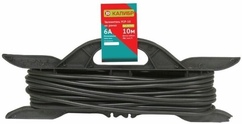 Удлинитель электрический "Калибр УСР-10" на рамке, предназначен для работы в сетях переменного тока напряжением 230±10%, ~50 Гц. При помощи удлинителя легко подключить удалённые от стационарной розетки электроприборы, имеющие шнур с плоской или круглой вилкой. Незаменим - на стройке, садовом участке, в промышленности и в быту. *в зависимости от поставки, внешний вид рамки может отличаться от представленного на фотографии. Сечение 0,75 мм2. Максимальная нагрузка 6 А, 1300 Вт. Длина кабеля 10 м.