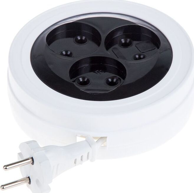 Удлинитель-рулетка PROconnect STANDART предназначен для подключения электрических приборов и электроинструментов в быту, когда недостаточно стандартной длины шнура для питания от стационарных розеток. Состоит из рулетки с 3 гнездами и кабеля длиной 3 м. Универсальные розетки позволяют подключить вилки российского и европейского стандарта. Удлинитель предназначен для использования в сухих помещениях. Технические характеристики: Тип: удлинитель Количество розеток: 3 Тип розетки: Россия/ЕВРО Напряжение: 220-250 В Заземление: нет Длина провода: 5 м Тип провода: ШВВП Сечение провода: 2х0.75 Выключатель на корпусе: нет Световая индикация: нет Максимальная нагрузка: 1300 Вт (1.3 кВт)/6 А Степень защиты: IP20 Рабочая температура: 0...+50 ?С Цвет провода: белый