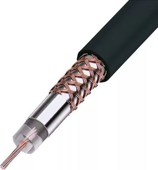 Кабель RG-58 A/U (50 Ом), Cu/Al/Cu, 64 % (бухта 100 м) черный REXANT радиочастотный со вспененной полиэтиленовой изоляцией в ПВХ оболочке. Применяется для передачи высокочастотного сигнала в различных системах связи, подкл внешних антенн, радио- и телевещательных системах . Используется для подкл внутренних и межблочных соединений. Конструкция: Внутренний проводник: многожильный из медной проволоки Диаметр по внутреннему диэлектрику: 3+/-0,1 мм Диэлектрик: физически вспененный полиэтилен Экран из фольги наложен поверх диэлектрика Внешний проводник: из медной проволоки в виде оплётки Диаметр проволоки в оплётке: 0,12-0,15 мм Плотность оплетки: 64% Наружный диаметр: 5+/-0,2 мм Материал оболочки: ПВХ Цвет оболочки: черный Длина: 100 метров Техн хар-ки: Волновое сопротивление: 50+/- ,0 Ом Сопротивление связи: 200 мОм/м Рабочая температура: -40...+60 °С Мин темп монтажа: –5 °С Срок службы: 25 лет