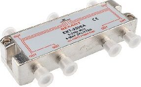 Телевизионный делитель это удобное средство для разделения сигнала на несколько равных частей. Антенные делители,также называемые телевизионные сплиттеры часто используются, когда требуется подключить один телевизионный кабель, идущий от антенны, сразу к нескольким телевизорам или ресиверам. Особенно это актуально в многокомнатных квартирах или многокомнатных загородных домах. Делитель имеет один вход под F разъем и шесть выходов, также под F разъемы. Сигнал, подающийся на вход делителя, делится на две равные части и передается на выходы. Для подкл кабелей используются стандартные F-разъемы. Полоса пропускания делителя от 5 до 2500МГц позволяет использовать его в системах спутникового телевидения. Качественно изготовленный ТВ сплиттер REXANT долго и надежно прослужит в составе телевизионной системы, делая удобной эксплуатацию нескольких тел-в.