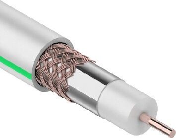 Кабель коаксиальный радиочастотный со вспененной полиэтиленовой изоляцией и в ПВХ оболочке. Является самым распространенным решением для подключения внутренних и межблочных соединений общепромышленных и бытовых радиотехнических устройств, для подключения систем телевидения, а также для подключения видеокамер наружного и внутреннего наблюдения. Диэлектрик: вспененный полиэтилен. Экран в виде сплошной алюминиевой фольги. Внешний проводник из медной проволоки в виде оплётки. Внутренний проводник: медь. Длина - 50м.