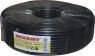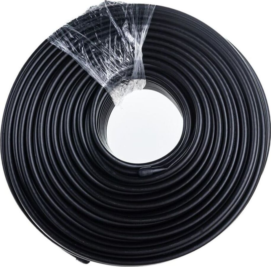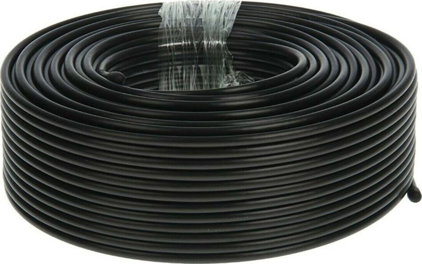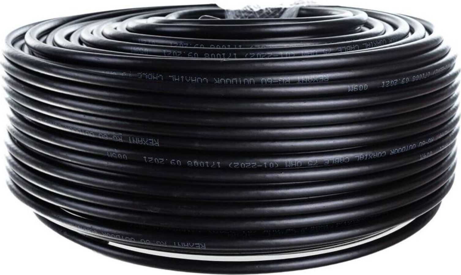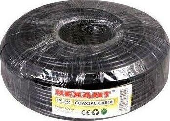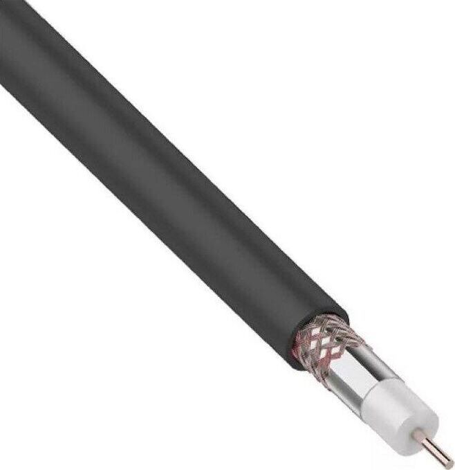 Кабель RG-6U (75 Ом), CCS/Al/Al 64 % (бухта 100 м) черный (OUTDOOR) REXANT, коаксиальный радиочастотный со вспененной полиэтиленовой изоляцией и в полиэтиленовой (PE) оболочке. Является самым распространенным решением для подкл внутренних и межблочных соединений общепромышленных и бытовых радиотехнических устройств, для подкл систем телевидения. Тех инфо: Внутренний проводник: стальная проволока, плакированная медью Диаметр внутреннего проводника: 1,02 мм Диаметр по внутреннему диэлектрику: 4,8+/-0,2 мм Диэлектрик: вспененный полиэтилен Экран : алюм фольга Внешний проводник: из алюминиевой проволоки в виде оплётки Диаметр проволоки экрана: 0,12-0,15 мм Плотность оплетки: 64 % Наружный диаметр: 6,8+/-0,2 мм Материал оболочки: полиэтилен PE Цвет оболочки: черный Длина: 100 метров Техн хар-ки: Волновое сопротивление: 75+/-3,0 Ом Сопротивление связи: 200 мОм/м Рабочая температура: –60...+60 °С Мин темп монтажа: –15 °С Срок службы: 25 лет