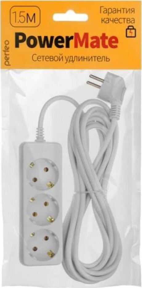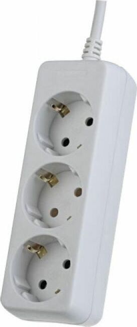 Удлинитель, количество розеток - 3 , максимальный ток нагрузки - 10 А , номинальное входное напряжение 220В, суммарная мощность нагрузки - 2,2 кВт, корпус из ударопрочного негорючего материала, материал контактов - латунь, долговечный кабель, длина кабеля - 1,5 м.