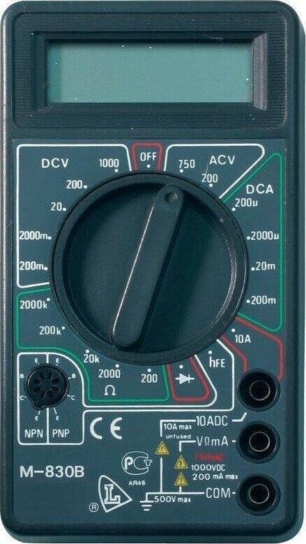 Диапазон измерения напряжения постоянного тока - 200мв; 1000В. Диапазон измерения напряжения переменного тока - 200В; 750В. Диапазон измерения силы постоянного тока - 200мкa; 10А. Диапазон измерения сопротивления - 200ом; 2000ком. Диапазон измерения емкости - 2000пф; 20мкф. Погрешность измерения емкости, в процентах - 1%. Диапазон измерения усиления транзистора - 0-1000. Индикация перегрузки - Есть. Тип питания - батарейка