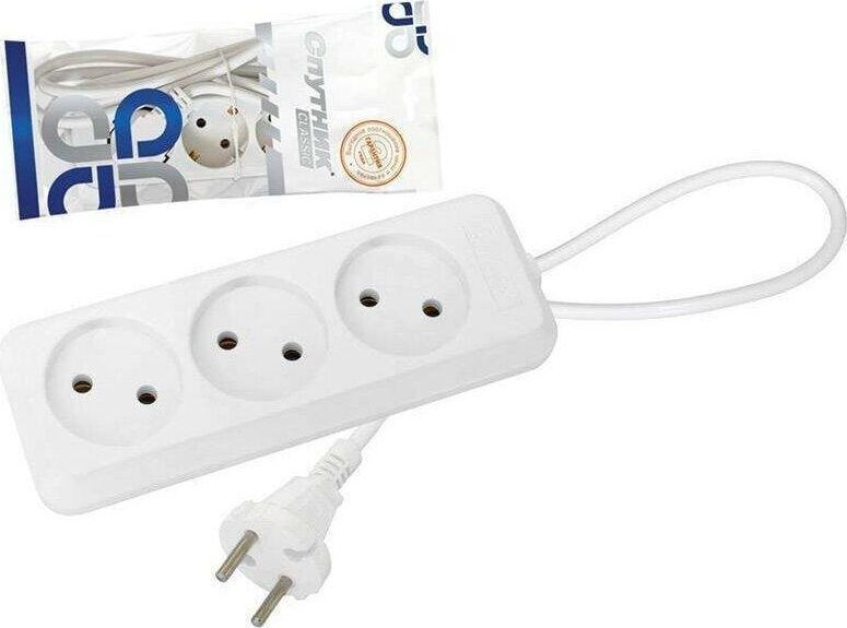 Двухжильный кабель ПВС, сечение 0,75 мм2, номинальное напряжение: 220 В, рабочая частота: 50-60 Гц, сила тока: 10 А, макс. мощность нагрузки: 2200 W (2,2 кВт), 3 гнезда, длина кабеля: 5 м, материал: пластик, индивидуальная упаковка: пакет с еврослотом.