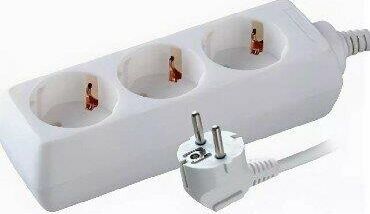 Бытовой удлинитель, с заземлением, количество розеток - 3 шт, номинальная сила тока 16А, Макс. мощность: 3500Вт, длина кабеля - 1,5 м.