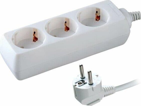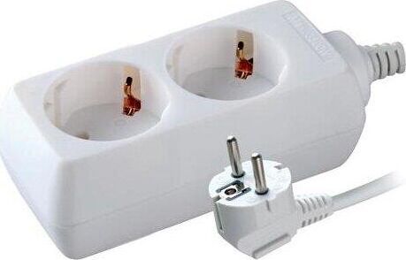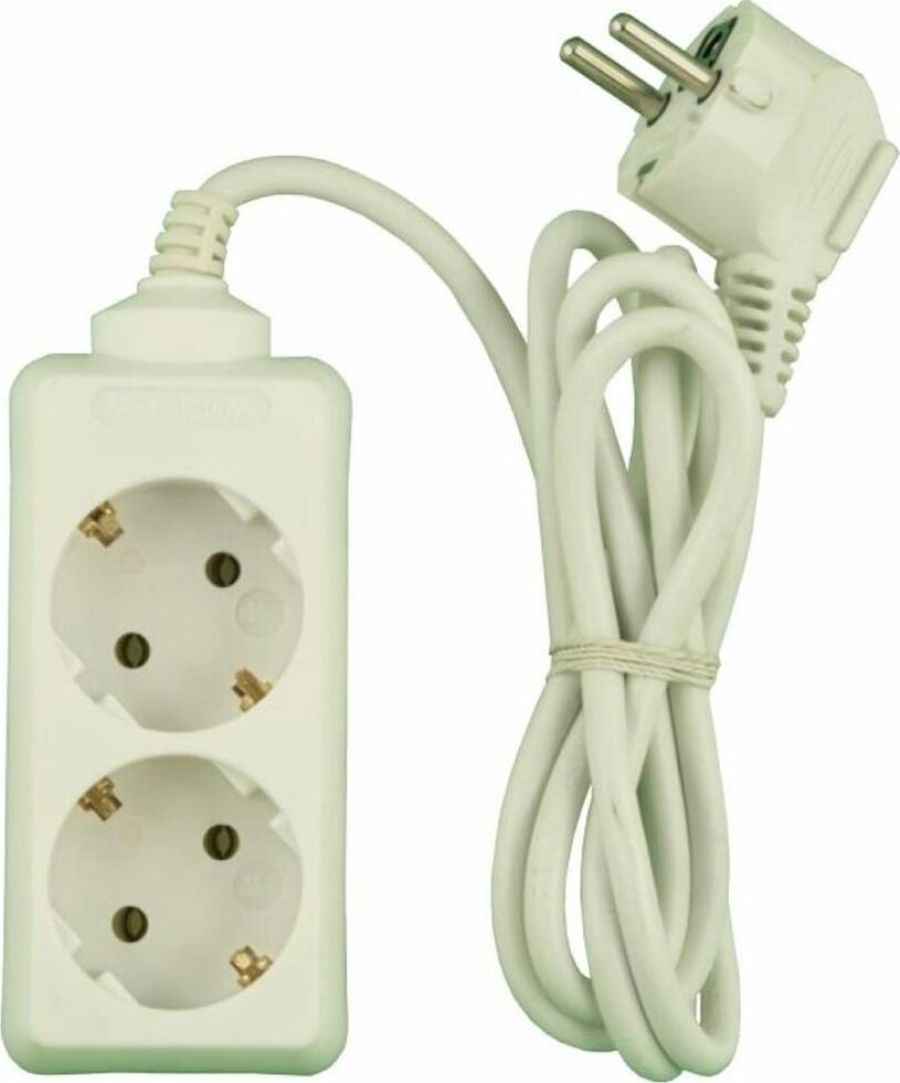 Бытовой удлинитель, с заземлением, количество розеток - 2 шт, номинальная сила тока 10А, мax нагрузка (Вт) - 2200 Вт., длина кабеля - 3,0 м.