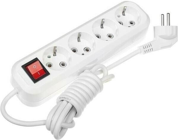 Удлинитель, номинальный ток, А - 16, максимальная мощность, Вт - 3500, количество розеток - 4, сечение провода, мм2 - 3x1,0, материал корпуса ABS-пластик, длина провода - 2 м.