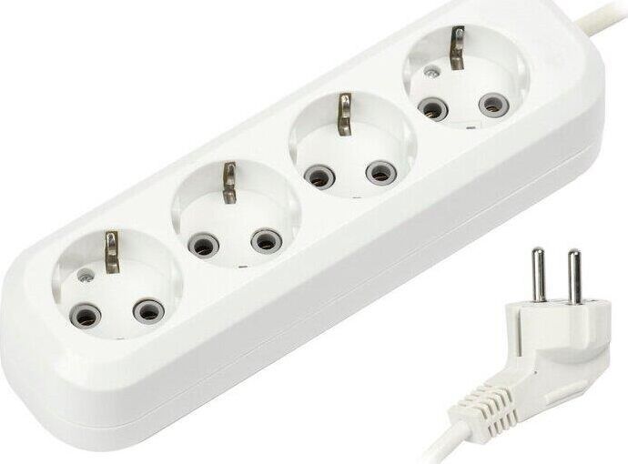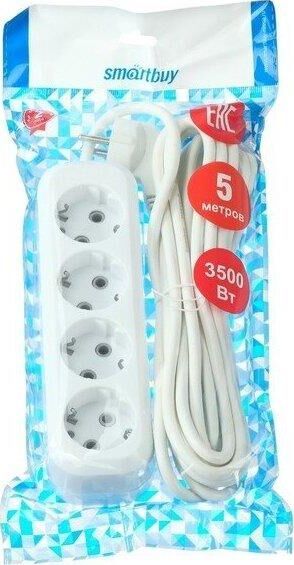 Удлинитель с заземлением, количество розеток - 4 , номинальный ток, А 16 максимальная мощность, Вт - 3500, сечение провода, мм2 - 3x1,0, материал корпуса ABS-пластик, длина шнура - 5 м.