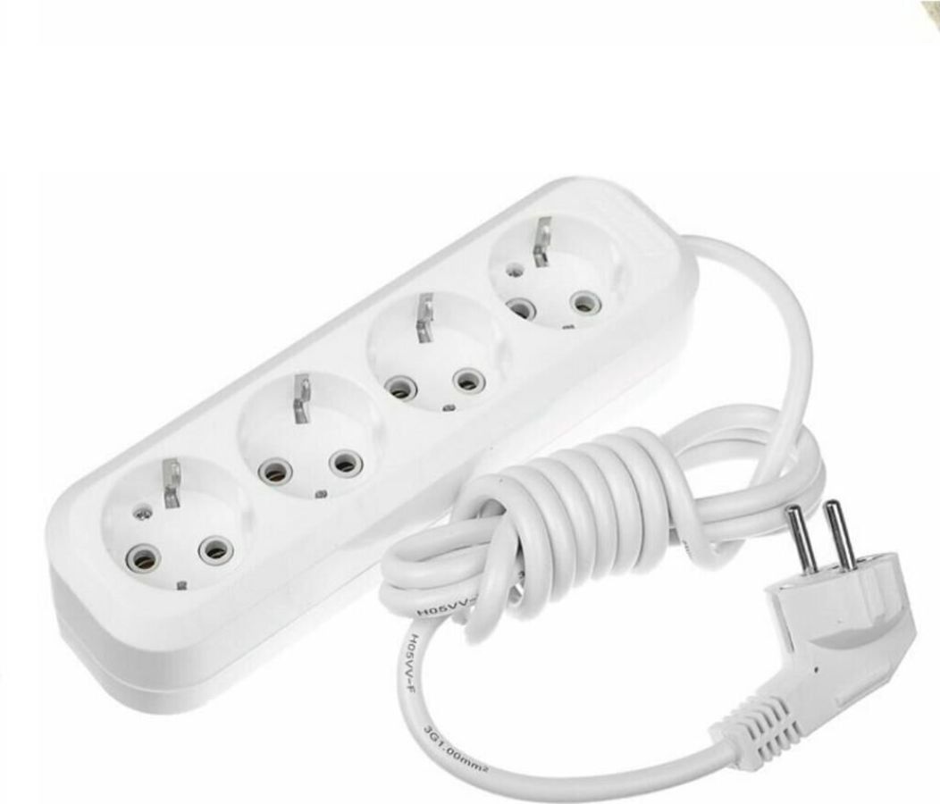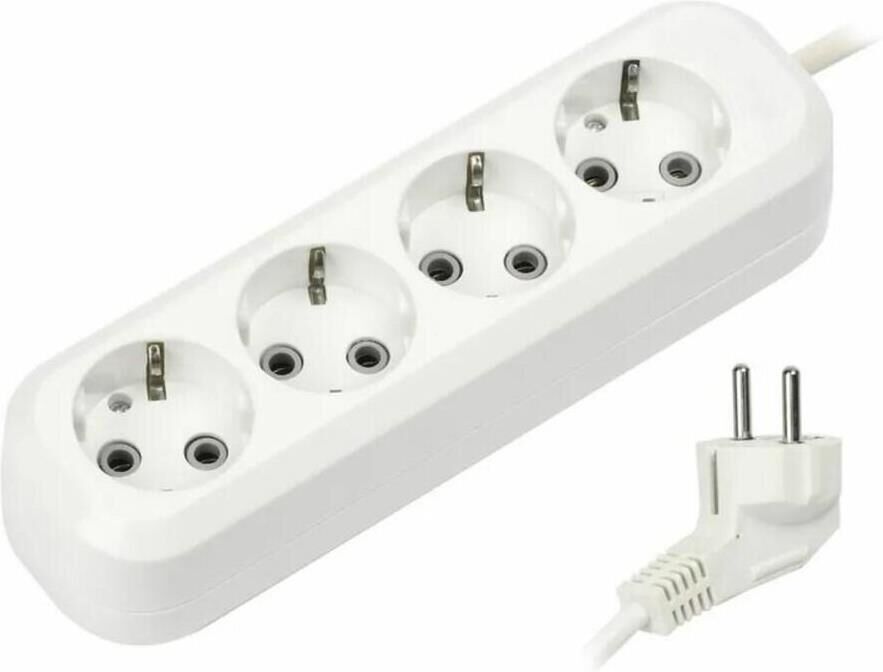 Удлинитель с заземлением, количество розеток - 4 , номинальный ток, А 16 максимальная мощность, Вт - 3500, сечение провода, мм2 - 3x1,0, материал корпуса ABS-пластик, длина шнура - 2 м.