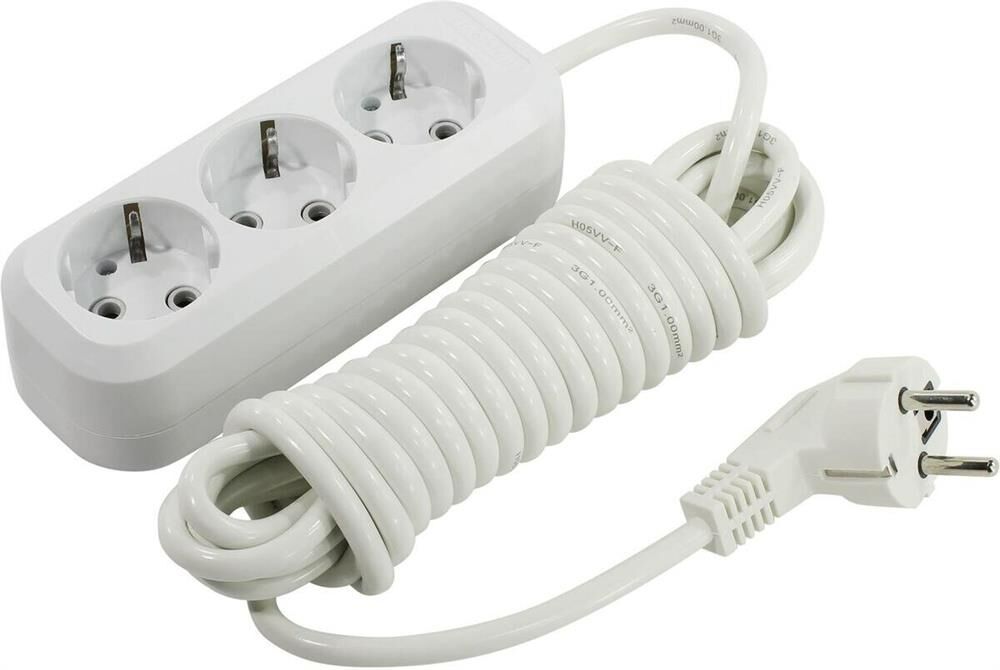 Удлинитель с заземлением, количество розеток - 3 , номинальный ток, А 16 максимальная мощность, Вт - 3500, сечение провода, мм2 - 3x1,0, материал корпуса ABS-пластик, длина шнура - 5 м.