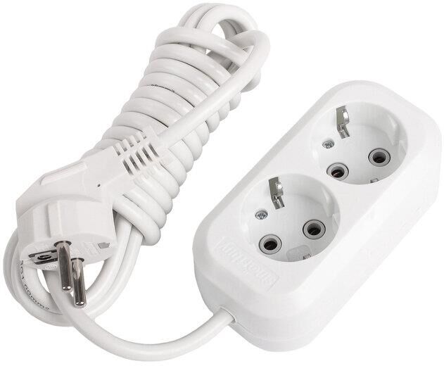 Удлинитель с заземлением, количество розеток - 2 , номинальный ток, А 16 максимальная мощность, Вт - 3500, сечение провода, мм2 - 3x1,0, материал корпуса ABS-пластик, длина шнура - 3 метра.