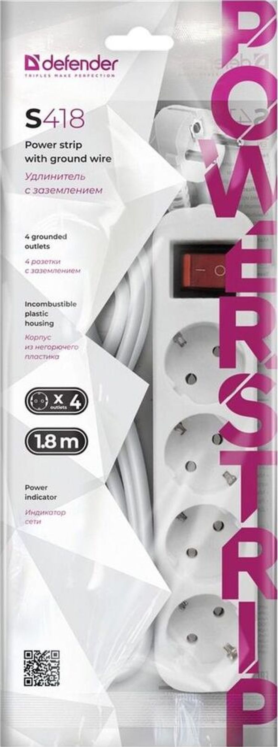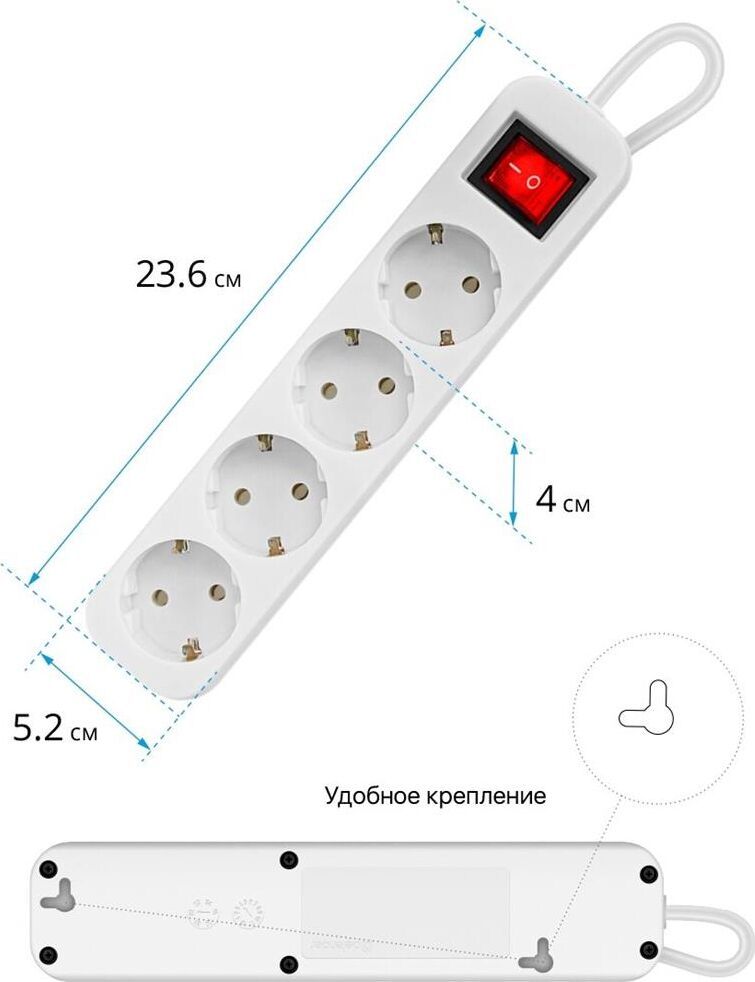 Длина кабеля: 1.8 м, Макс. мощность: 2200 Вт, Макс. нагрузка: 10 А